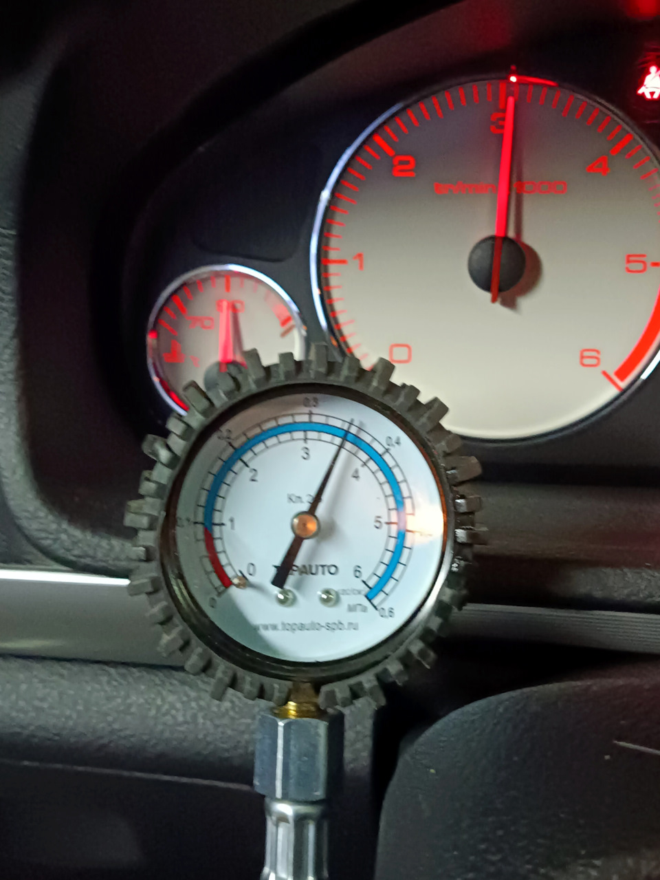 Перед откачкой шестидесятки проверил что с давлением — в норме, просело совсем чуть за пробег 4593 км.
