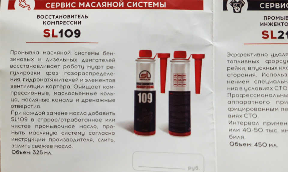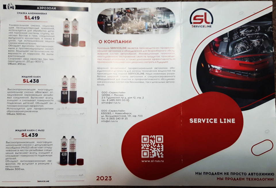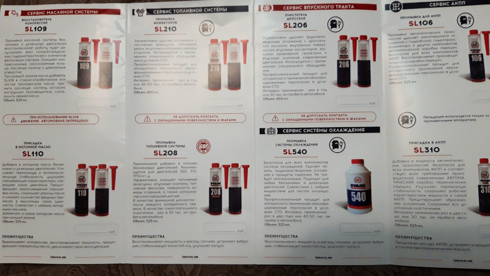 Компания продавшая мне этот продукт, сдобрила посылку буклетом SL, в арсенале которой около 20 продуктов (присадок/промывок) для авто.