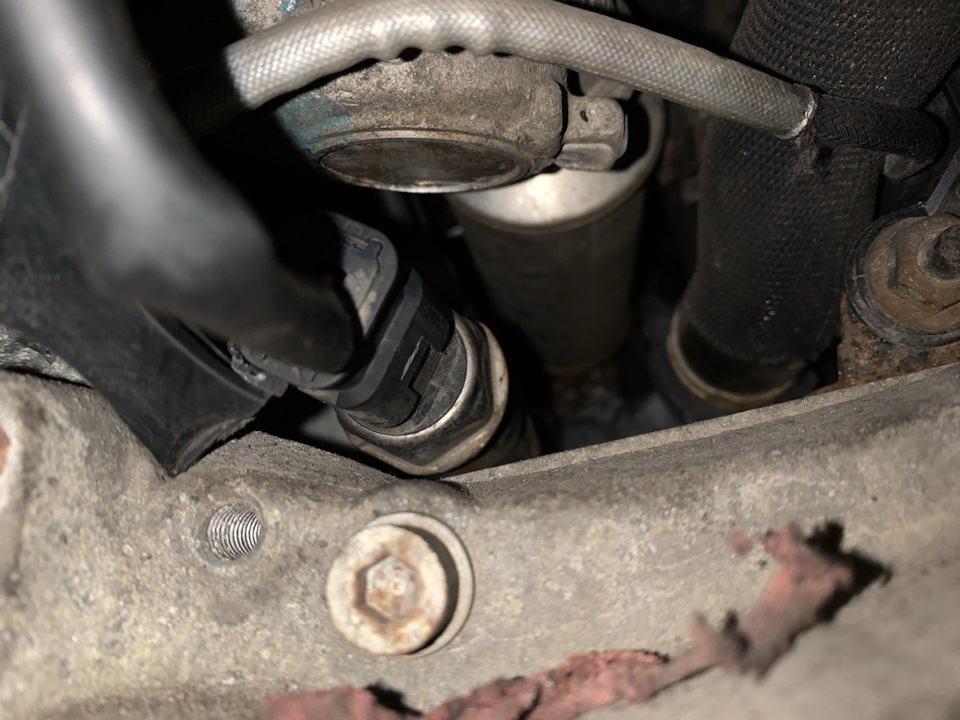 Уж очень не хотелось разбирать половину подкапотки на холоде, дабы добраться до злополучного датчика. Но, мы справились малой кровью, вот только пришлось обломать крепление фишки этого датчика, чтобы снять его (очень мало место для манёвра). Для снятия самого датчика (его надо было открутить) была приобретена длинная торцевая головка на трещётку.