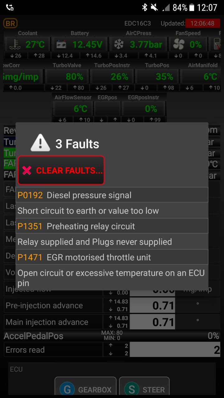 Подключил FAP, а там, к моим родненьким ошибкам, добавилась ещё одна: P0192 (Fuel pressure signal: Short circuit to earth or value too low).