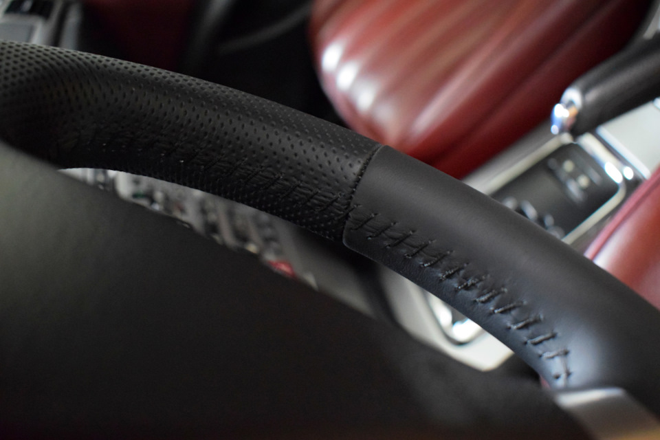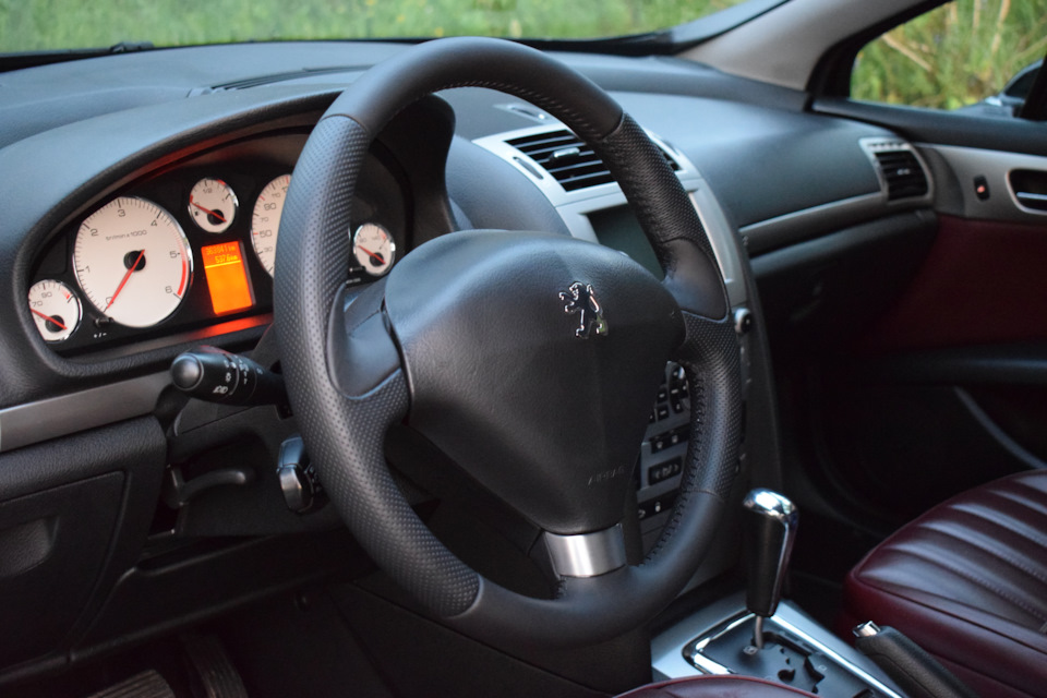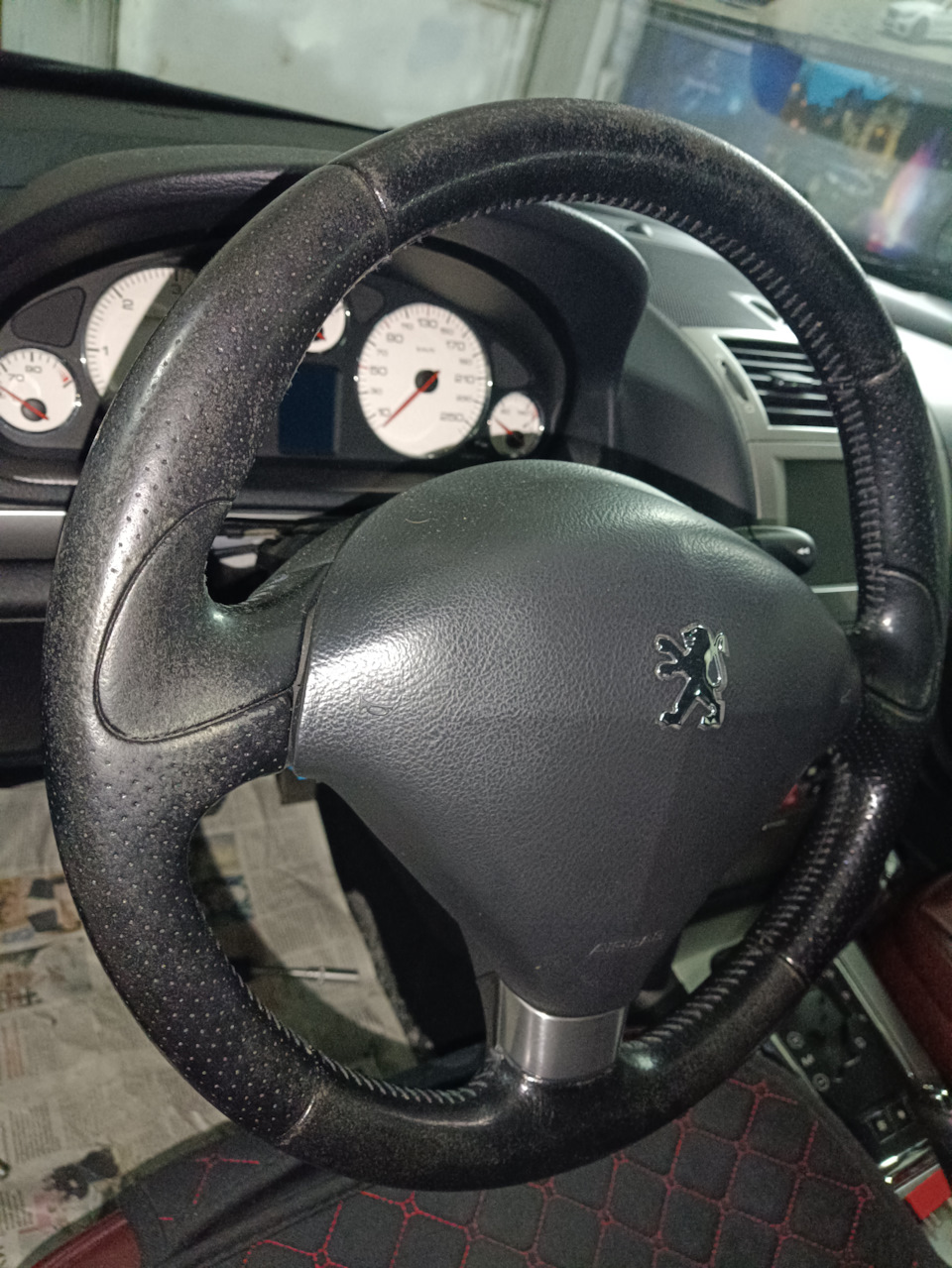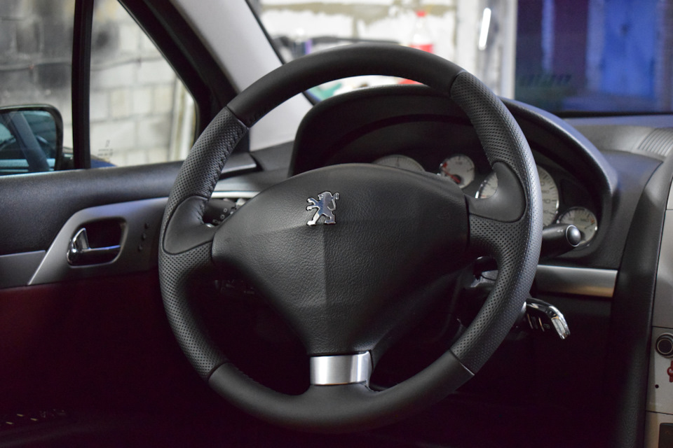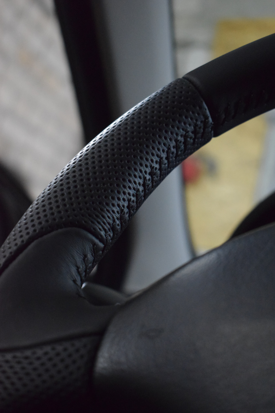 Отвёз его в авто ателье SecondLife. Задача и выбор материалов был прост и не обдумывался — только натуральная кожа и заводской вид. Кстати, ребята там предлагают подменные рули на период перешива, но мне в солевой сезон это было ни к чему. Через день руль был готов: