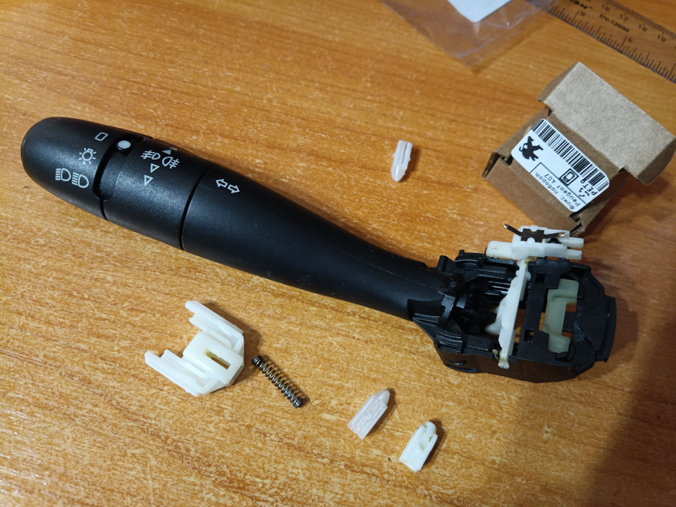 После замены рычажок стал жёстковат, с отчетливыми щелчками. Сейчас толи привык, то ли притёрлось, но работает отлично, кажется вот так и должно быть. А я и не знал что для моргания дальним есть отдельное положение, частенько в попытках моргнуть включал дальний).