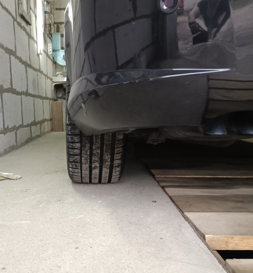 Позже, начав эксплуатацию Ханкуков, ещё впервые познакомился с обкаточным периодом, это длилось где то 300км, машина не держала траекторию при активном выходе из поворота, как то не ожидал такого и по началу вообще не мог понять что происходит. В добавок я наблюдал что на передних шинах при остановке с вывернутым рулем образуется приличная, сплющенная складочка, поначалу думал что это вина в несовместимости j8 с 255й шириной от чего и шина не правильно работает, однако Ситроводы же как то ездят). Но обкаточный период закончился и на это я забил. Почти) . И действительно на шинах был какой то налёт, скорее всего оставленный от пресс формы. Родные soleil j7.5 18 у меня всегда ездили с шириной 245, тогда как максимально допустимый размер там 235 и такого не наблюдалось, но видимо там решал повышенный профиль 45 что нивелировало этот момент. Ну и основной минус это ярко выраженные неподрессоренные массы, зубодробительная жёсткость (вес колеса 25.7кг.) — колеса будто живут своей жизнью — раскачка кузова при остановке. Ну и подтирания, они все таки обнаружились. Сзади почти сразу когда впервые активно заезжал на второй этаж парковки trinity (гродненцы в теме) услышал шоркающий звук — внешний угол шины таки цеплял локер, но там скорее вина не в размере, а в пружинах от купе, после чего я на волнистых, региональных трассах не раз слышал этот звук, приходилось порой даже нажимать спорт-режим амортизаторов что бы не испортить подкрылки. Позже и спереди на подкрылках я обнаружил едва уловимые касания, которые видимо проявлялись при большой игре подвески — в общем это послужило последней каплей и я принял твёрдо решение о переходе на штатный размер 245 40.