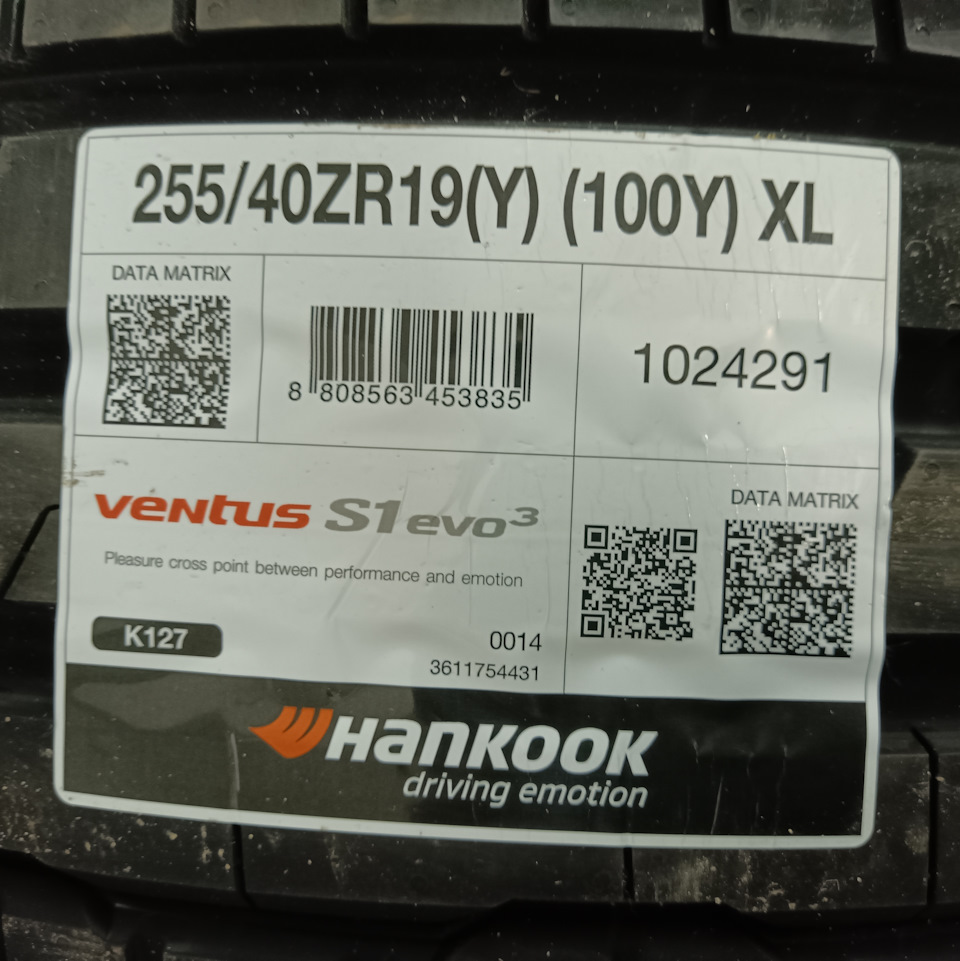 Nineteen'19 достались с двумя вполне годными летними шинами Hankook 245/40, которые я так же успешно продал — размер, да и возраст меня не совсем устраивал а главное хотелось комплект 4 одинаковых, с этой красотой нужно делать всё максимально по фен-шую, следовательно шины выбрал Hankook Ventus S1 evo3 K127 255/40R19 100Y