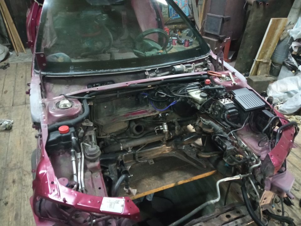 Затянулась покраска, точнее подготовка. Но все когда-нибудь заканчивается. В ноябре машина была к моей большой радости подварена (пороги, часть днища, подправлен капот, вытянуты небольшие вмятины и убиты все жуки) и покрашена. За это время полностью я переуплотнил и перебрал двигатель. ну как перебрал, несмотря на пробег 400+к км. вкладыши, коленвал в идеале. Нашел 2 форсунки, перешил передние сидения и карты, купил обломанные трубки кондиционера, сам компрессор и насос гура (не понравился мне мой), куча клипс, изоленты, гофры и прочей мелочевки. Потихоньку приступил к сборке. Это то еще испытание, как пазл, начинаешь медленно ищешь нужный болт, деталь по мере сборки идет все быстрее.