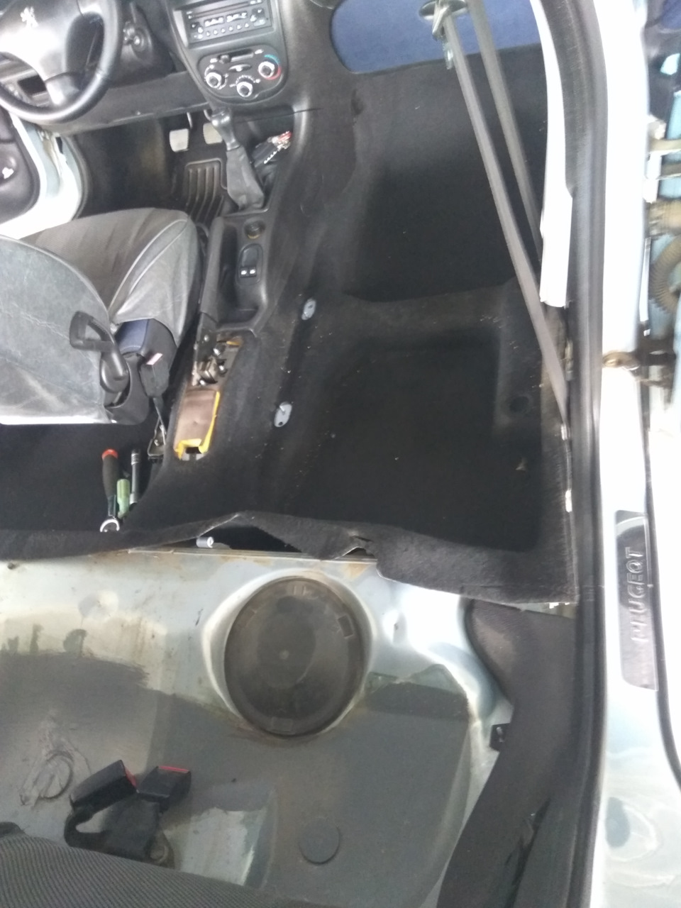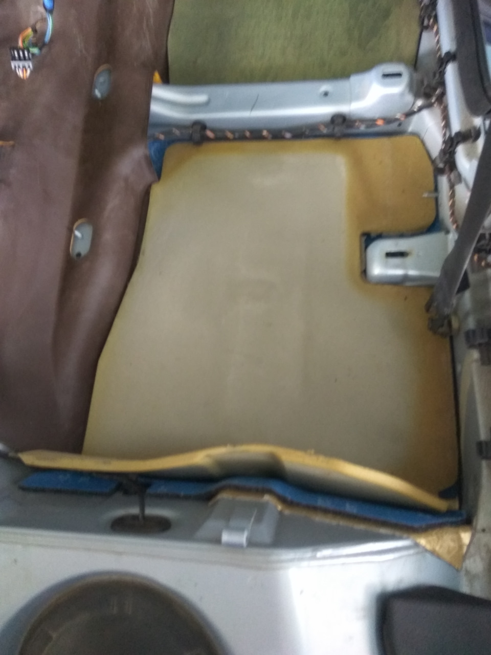 Передняя пассажирская часть. Трещетка подпирает заводской ковролин и заводской пенопласт, который идёт с моторного щита.