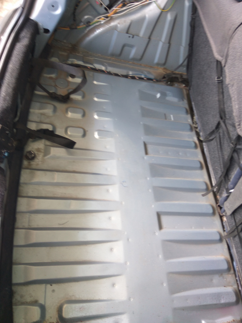 Первым делом разбираем салон. Сначала начал с задних сидушек. Тянем вверх, наклоняем к передним сидениям, достаём из проушин креплений. Спинки задних сидений я не снимал, так как не выкрутился один болт крепления спинок к кузову. Ломать и рассверливать не хотелось, да и в процессе понял, что спинки не мешают процессу.
