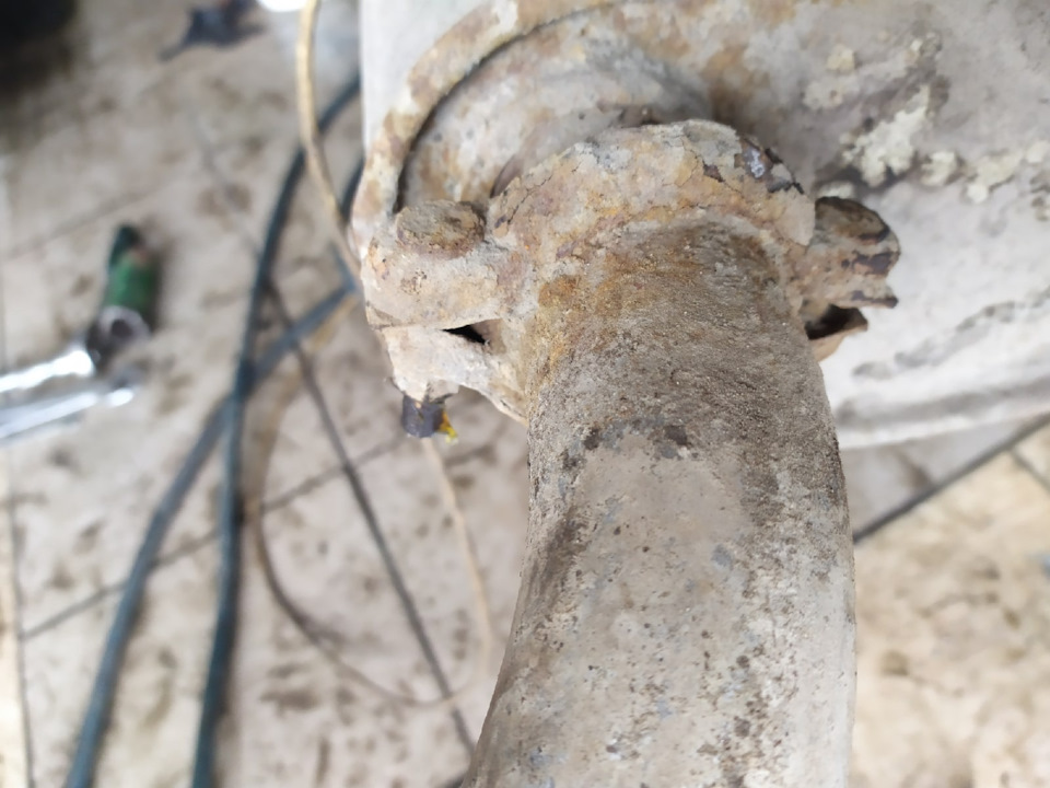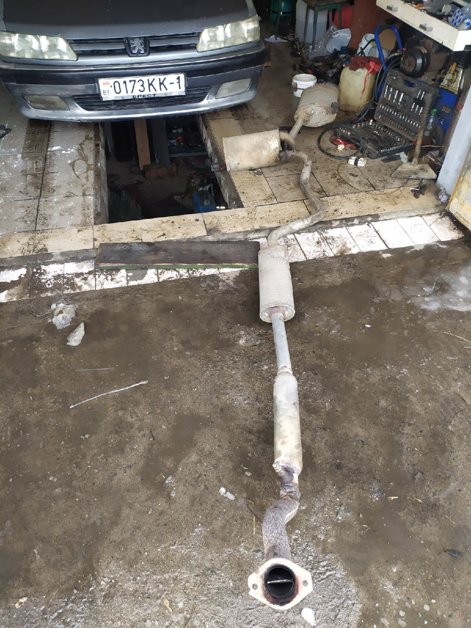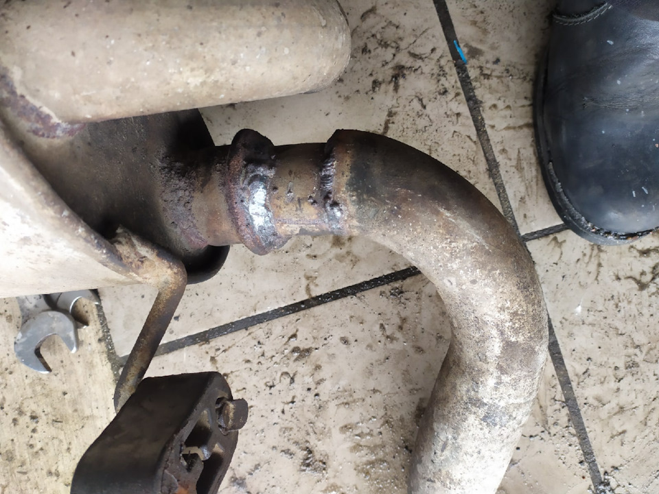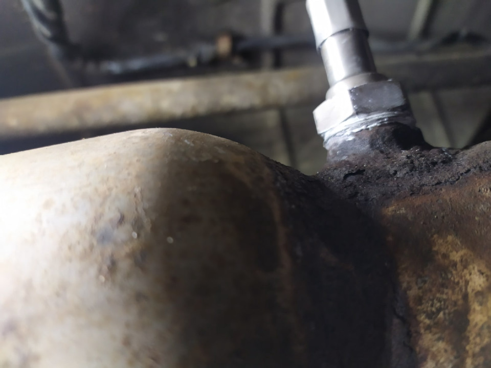 Старая лямбда прикипела и не хотела выкручиваться. Данная проблема у меня была уже. Пришлось снять всю выхлопную систему и резать старую лямбду.