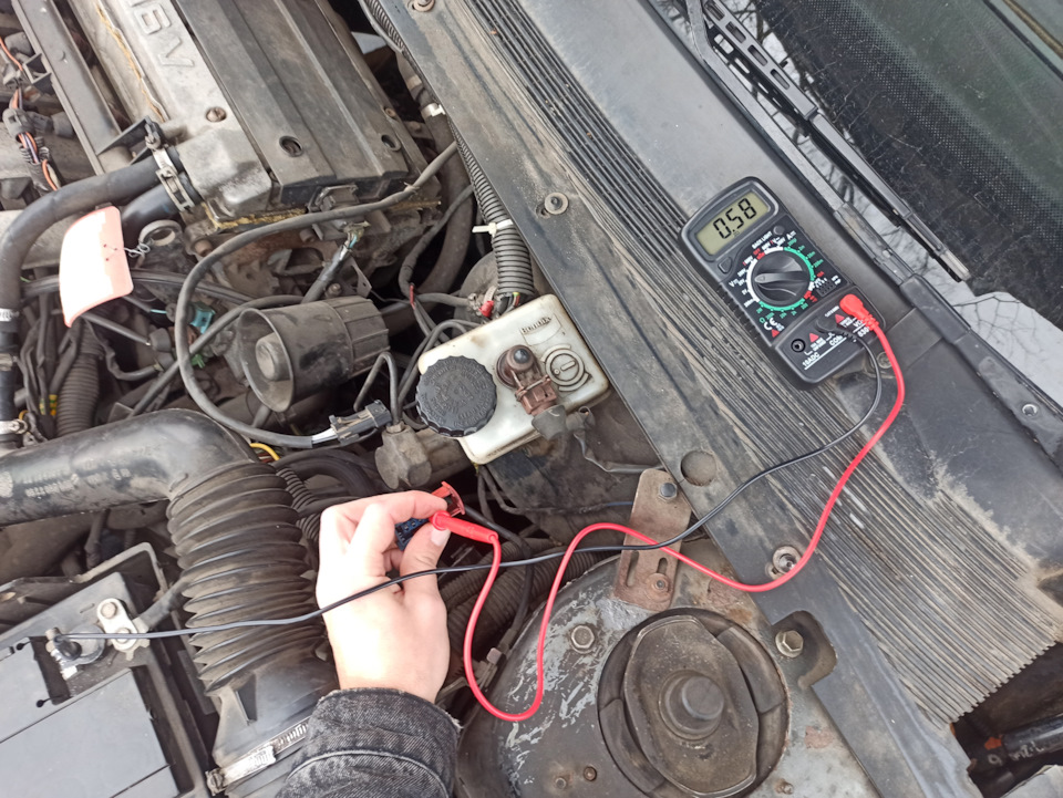 **Отрицательный провод мультиметра подключить на корпус движка (к массе авто).