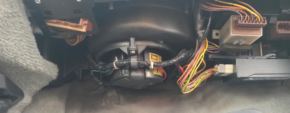 1) Снимаем под бардачком пач-панель. Под ней и будет вентилятор. Крепиться на 3-х шурупах. Далее нужно отсоединить все провода подключенный к нему и вынуть.