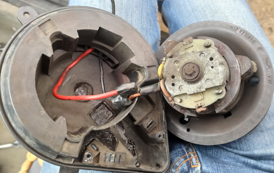 2) От платы отсоединить проводку (красный и черный) и достать из пластикового кожуха моторчик.