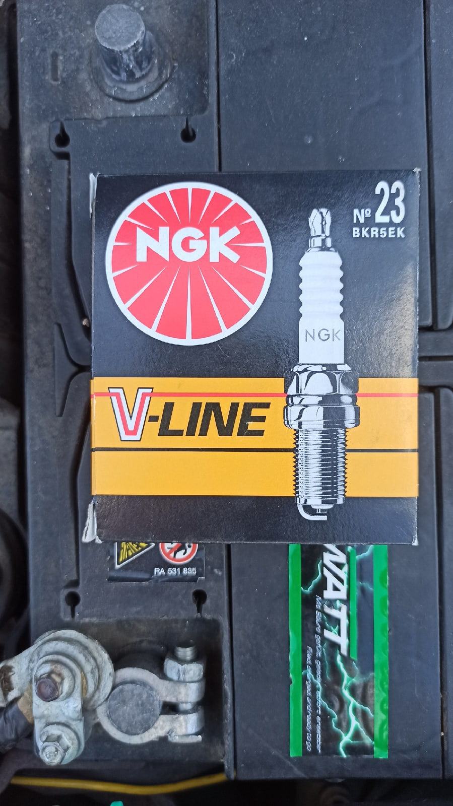 Заменил свечи зажигания. Покупал такие же, как и 1 раз, они мне понравились. BKR5EK / 4483 / Свеча зажигания V-LINE23 NGK. Цена — 12,2$. На старых проехал 36тыс.