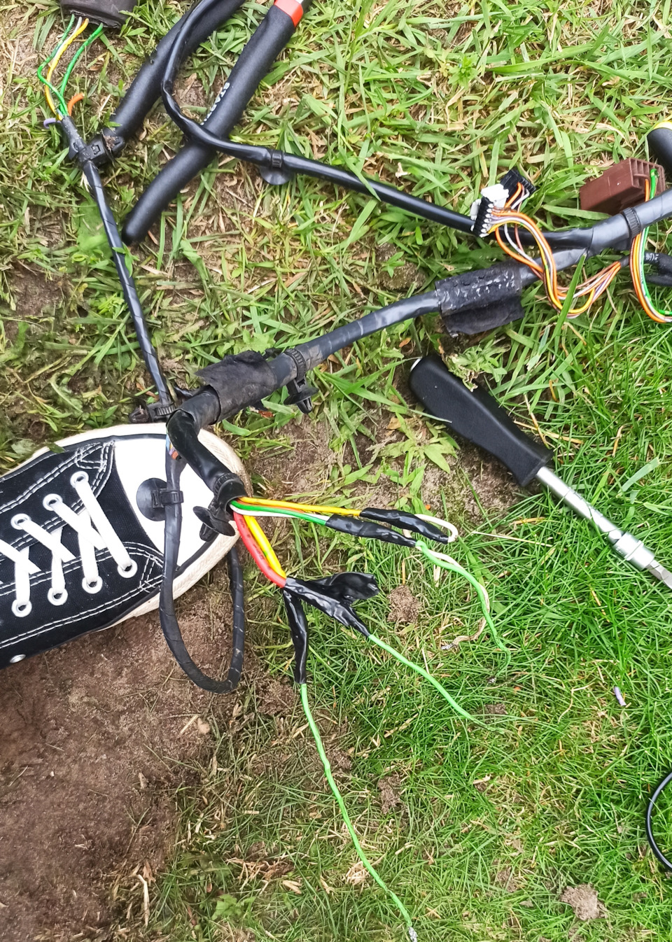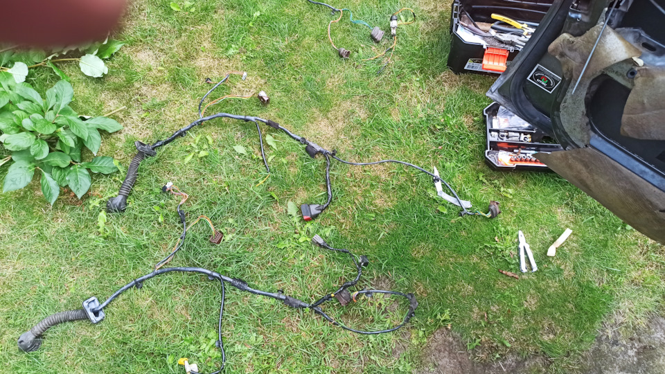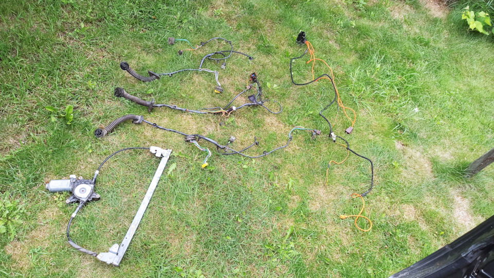 *Что заметил: сильный колхоз левого переднего стеклоподъёмника, остальные провода толстые по заводу на 5 контактов, к левому переднему 3 (низ, вверх, ну и свет диода).