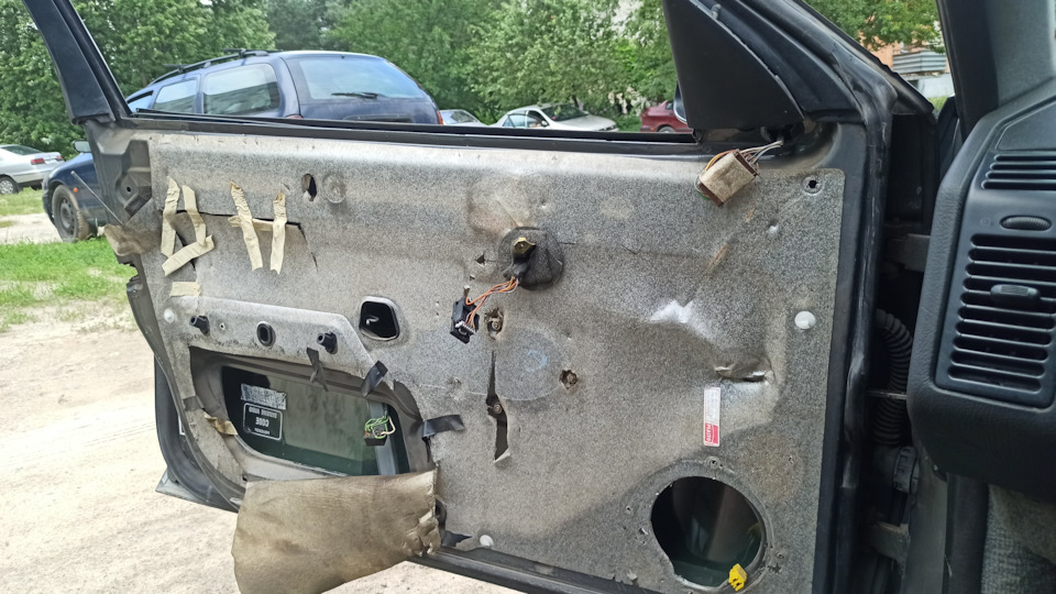 1) Начал снимать дверную карту передней двери. Именно ее трогал впервые.