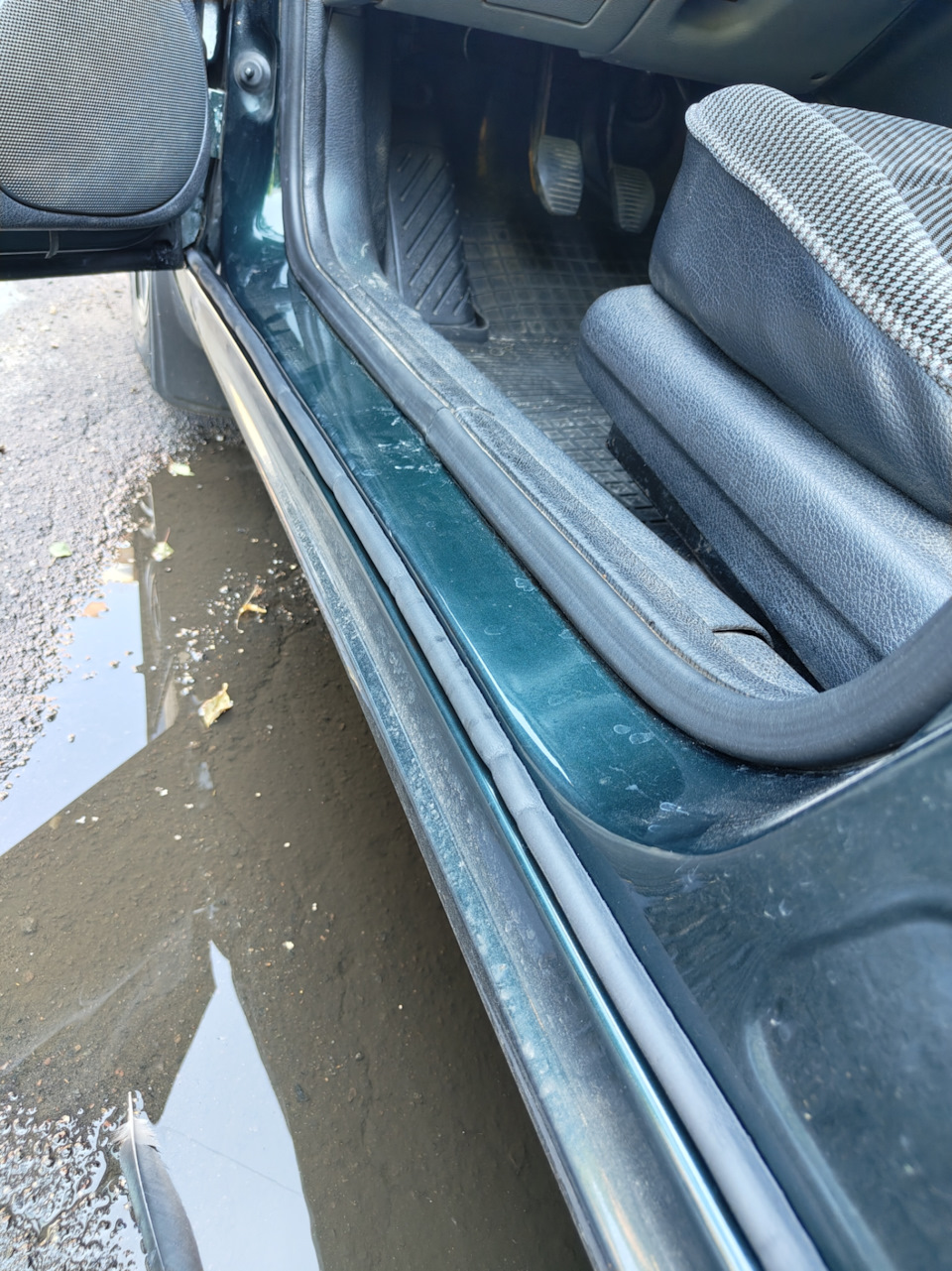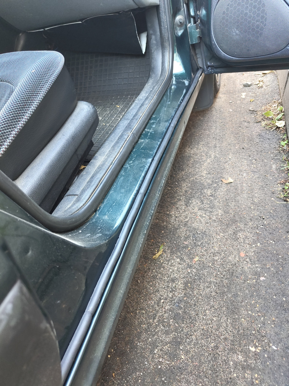 Испробовал парочку лайф хаков (ну или лайф факов, это кому как). Так как после кузовного ремонта оригинальные накладки не уцелели было принято решение использовать проверенный многими вариант. Куплен D-образный уплотнитель и проклеен по кромке порога (там же, где и был штатный). Остатки приспособил на кромки дверей (в том месте, где сбивалась краска).