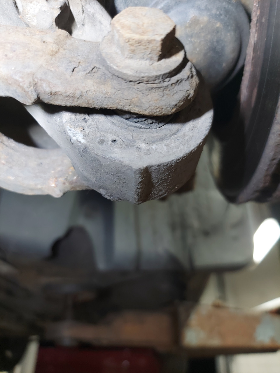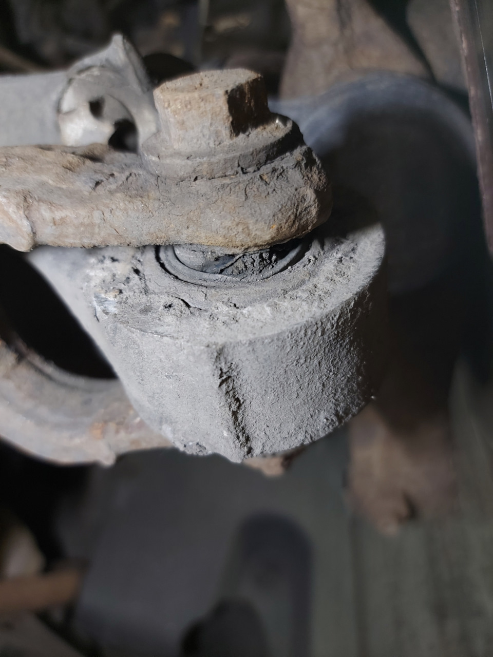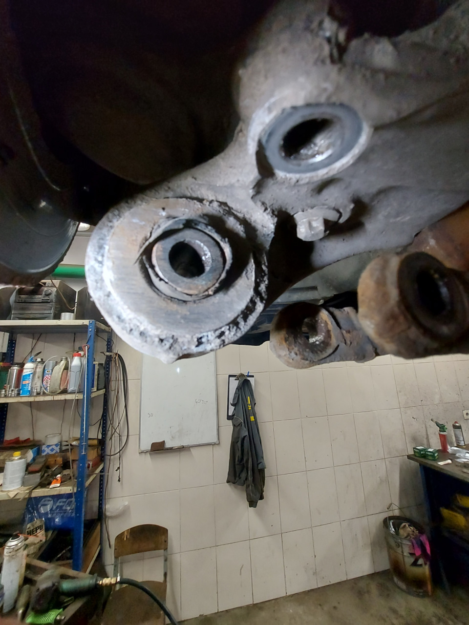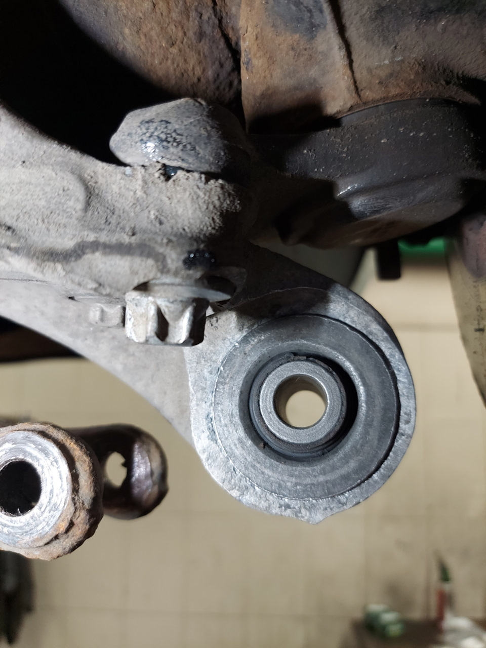 Заодно были заменены нижние сайлентблоки вертикальных рычагов. Резину не ело, но с левой стороны уже начало выдавливать резину.