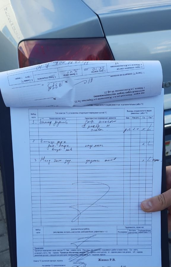 В октябре 23 года мне в стоячую машину въезжает Polo в левый угол заднего бампера.