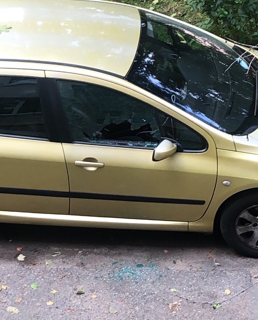 Продолжим. Спускаюсь я на улицу, нашёл косца. Ситуация следующая, он повредив стекло, не умышленно, сделал фото причиненного вреда и вызвал представителей правоохранительных органов. Не ГАИ. Пришлось подождать… мы составили протоколы.