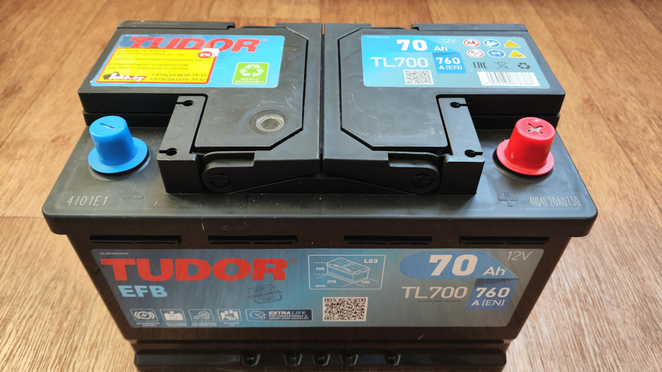В феврале машина стала заводится с коротким сообщением об ошибке радара. Ну тут понятно, АКБ. В один прекрасный и морозный день при открытии двери стекло опускалось как-то особенно лениво, да и стартер мотор не провернул)) Штатный АКБ сдался, зарядка вопрос не решила, а только отсрочила на неделю-две. На замену заказал Tudor TL700.