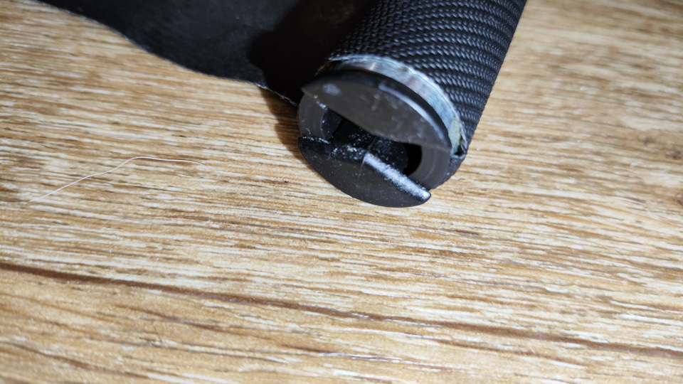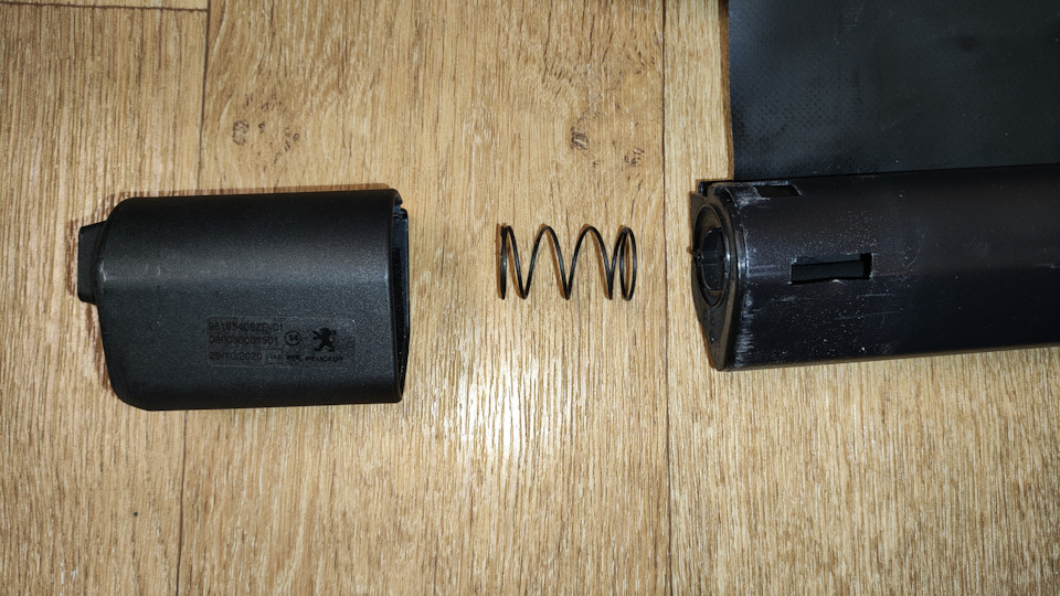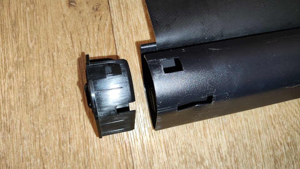 В этой части и находится пружина. сначала проверяем не лопнула ли она. Я взял USB-кабель, воткнул его в отверстие в валу шторки и повращал. После пары оборотов уже чувствуется что пружина хочет раскрутиться обратно. Дальше делал так. Достал вал со шторкой из корпуса, скрутил шторку на вал. Поставил вторую крышку на вал и закрутил пружину на 13 оборотов. В принципе можно и чуть больше, будет быстрее сматываться. Я не спешу, мне и 13 норм)) Удерживая крышку с взведенной пружиной запихнул вал обратно в корпус и защёлкнул крышку в корпусе. Собственно и всё. Внешнюю крышку сразу не ставим, проверяем как быстро сматывается шторка. Если всё устраивает, но несём шторку обратно в машину. Весь ремонт занял минут 40, затрат на ремонт ровно 0.