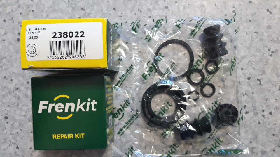 На сервисе левый еле закрутили, правый тоже не айс, но ещё туда-сюда. Было решено отдать толковому специалисту и не ломать копья самому. Забегая вперед скажу, что работа выполнена мастерски с пескоструйной обработкой суппортов и покраской. Куплены были ремкомплекты от FRENKIT: