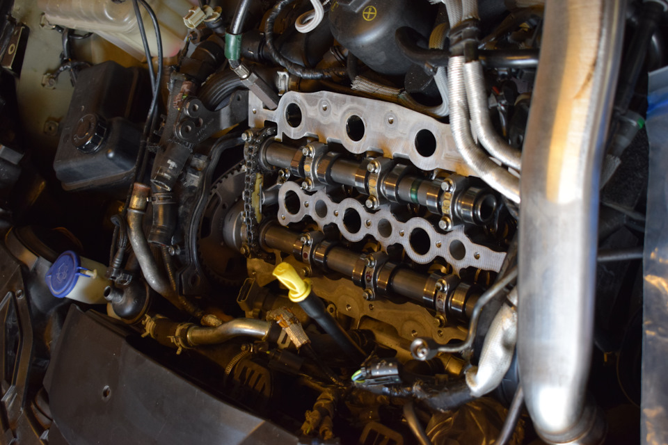 Итак, снятие передней клапанной крышки — занятие для меня волнующее, ни разу этого не делал, вроде так то ничего сложного нет, единственное что 2 из множества болтов её держащих находятся под корпусом ремня грм, корпус нужно частично открутить и сдвинуть его в сторону, предварительно сняв натяжной ролик ручейкового ремня. Потом все трубопроводы форсунок и сами форсунки.