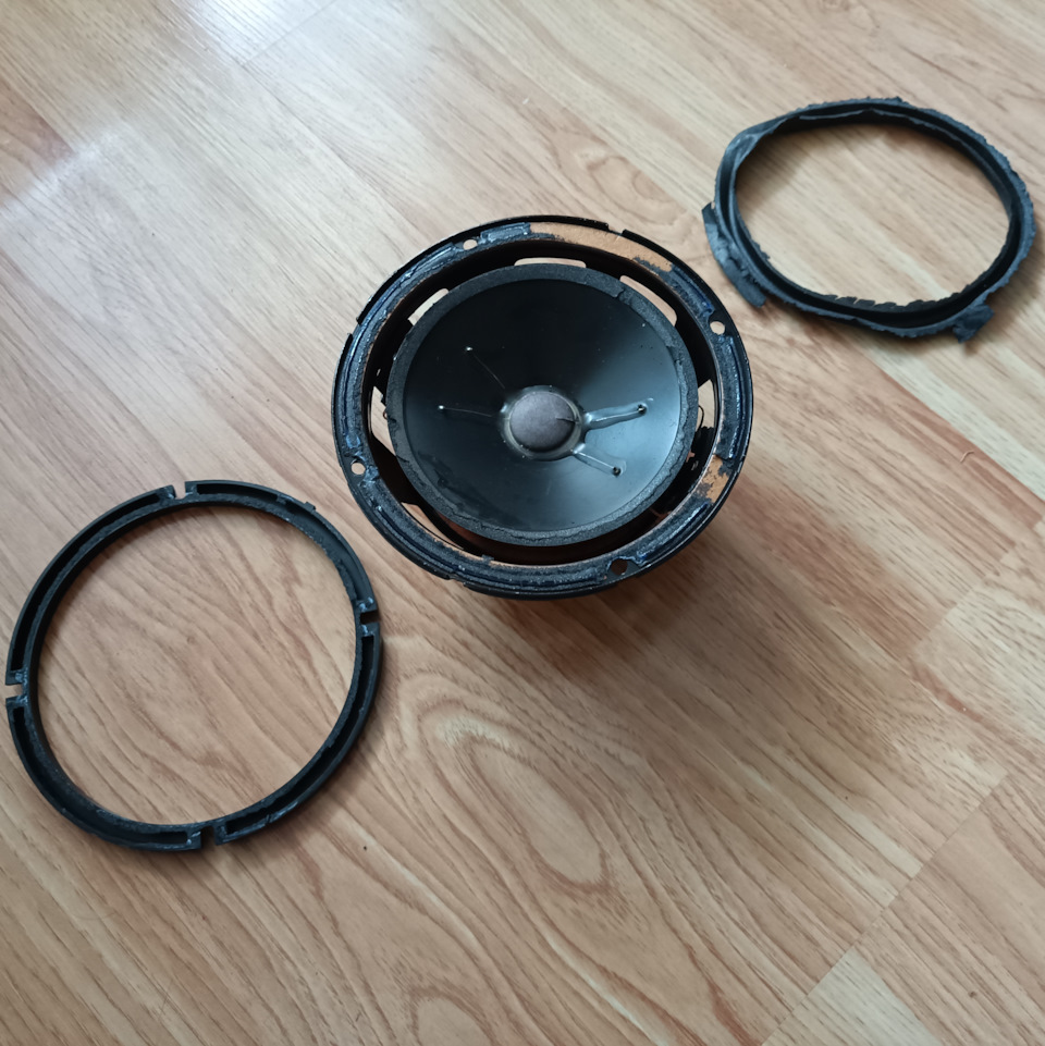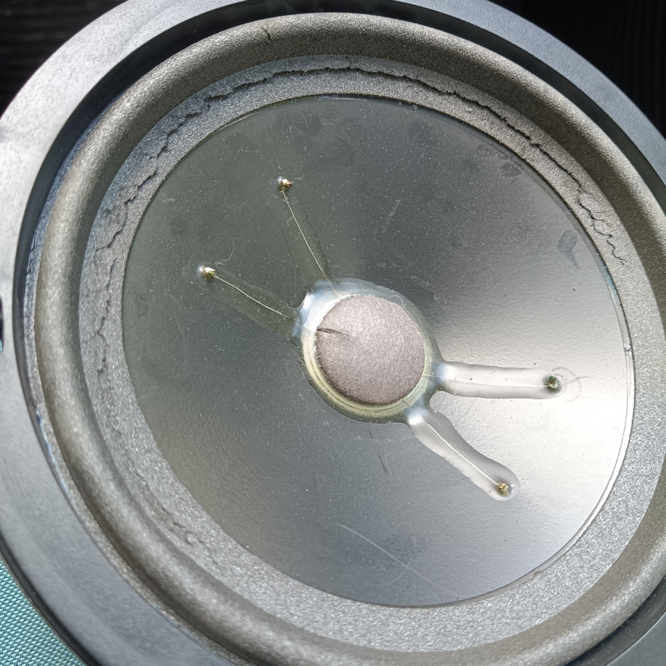 Захрипело у меня в багажнике, немного погуглив, понимаю что и у меня будет такая проблема — рвётся подвес динамика. Снял крышку и да, на 60% окружности порвано. Ну думаю время берёт свое, и я в настройках ещё bass на 7 деление давным давно поставил, люблю я это дело.