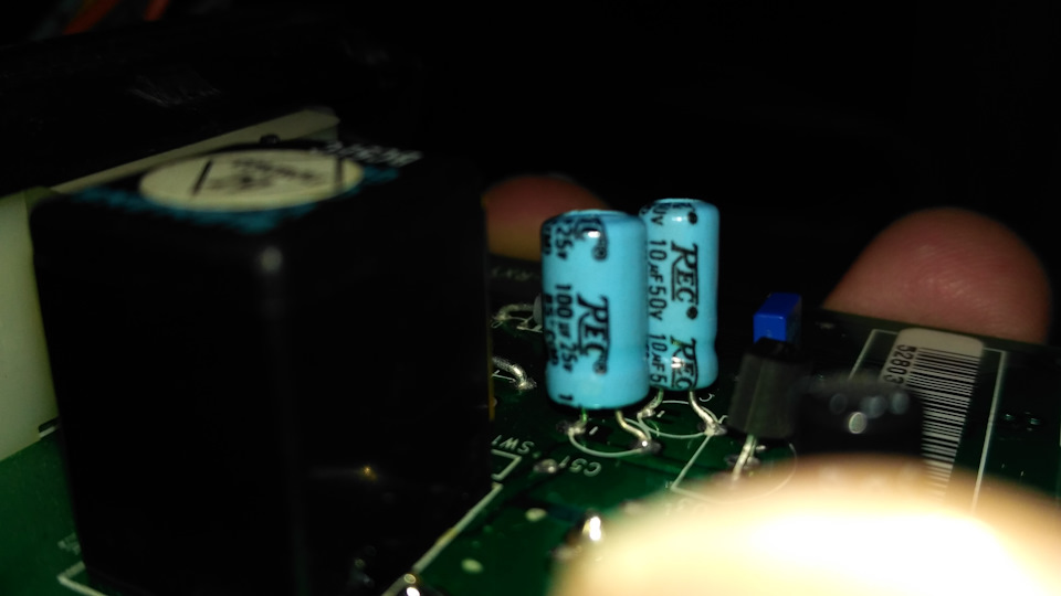Итог: 1 диод звинел в обе стороны (значит пробит), а также перепаял все кондёры в соответсвие с номиналом ёмкости.