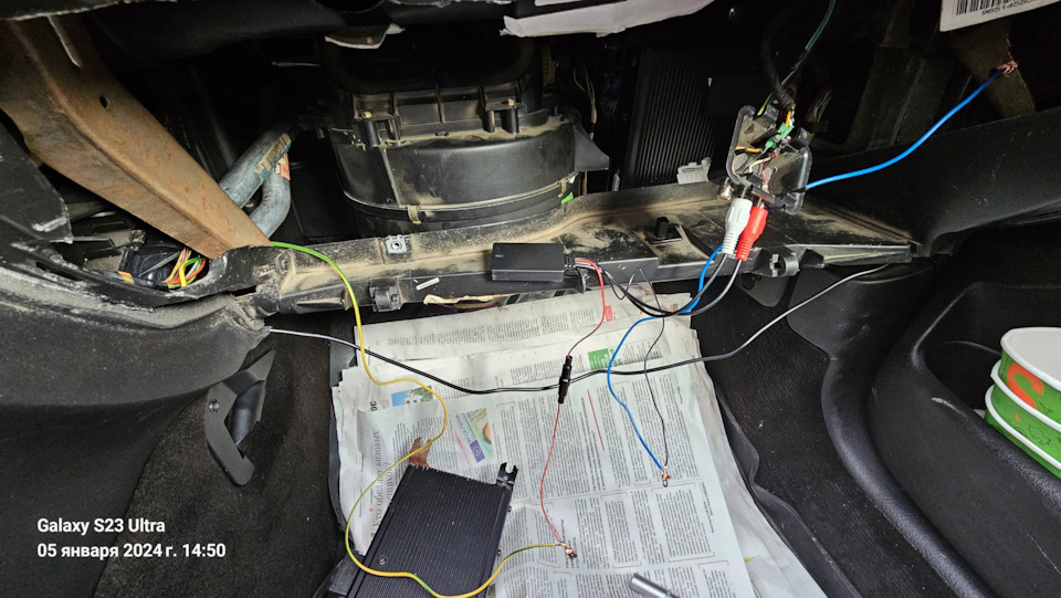 Потом все заизолировал, провода через фиксатор тюльпанов протянул в бардачок