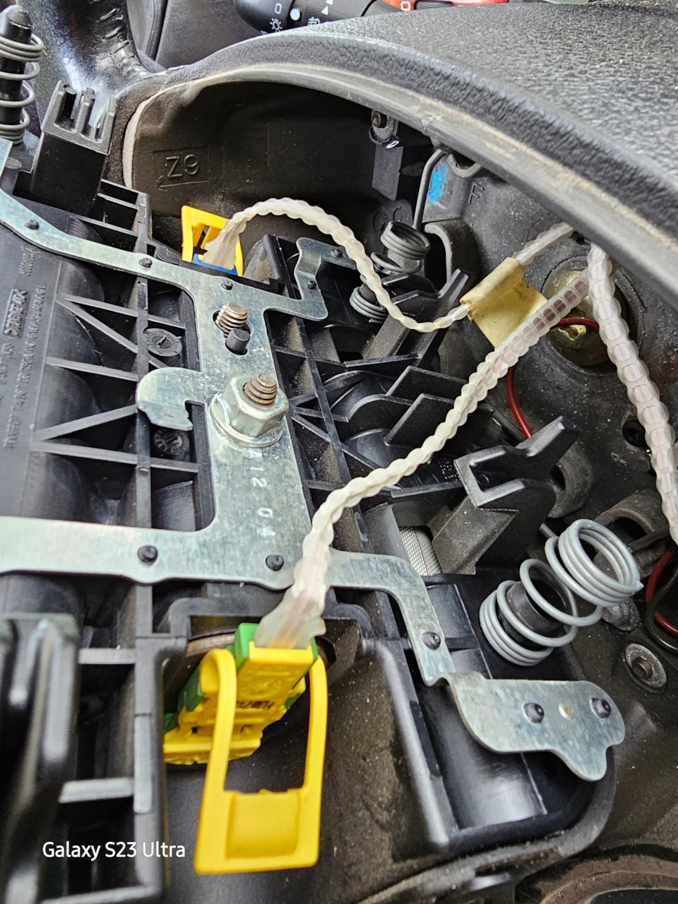 ,желтые:фиксатор отстегиваем и тянем фишки вбок .Откручиваем болт, держащий руль и снимаем его