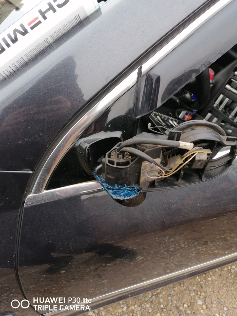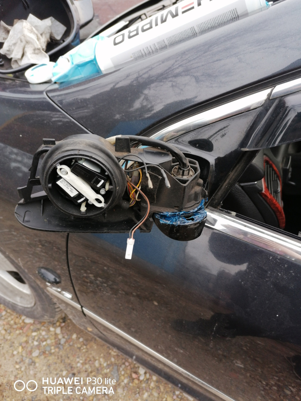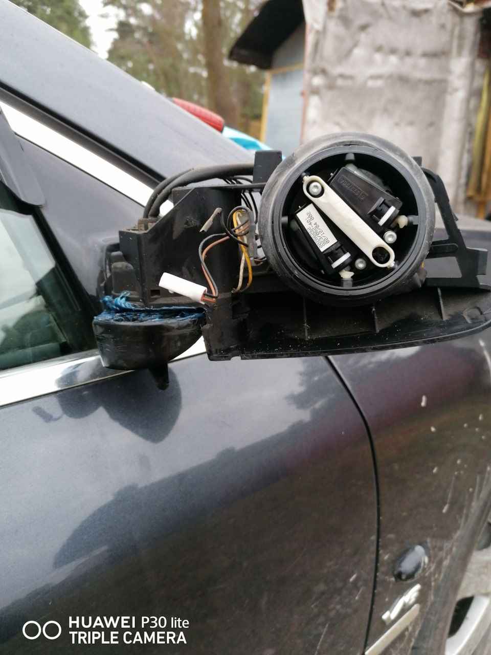 Решил разобрать и смазать боковые зеркала, а то старая смазка уже усохлась, а скоро зима, заодно глянуть чего иногда ошибка по подогревы бьет.Подымаем зеркало вверх и отверткой толкаем от себя и в сторону 2 фиксатора-стопора зеркала