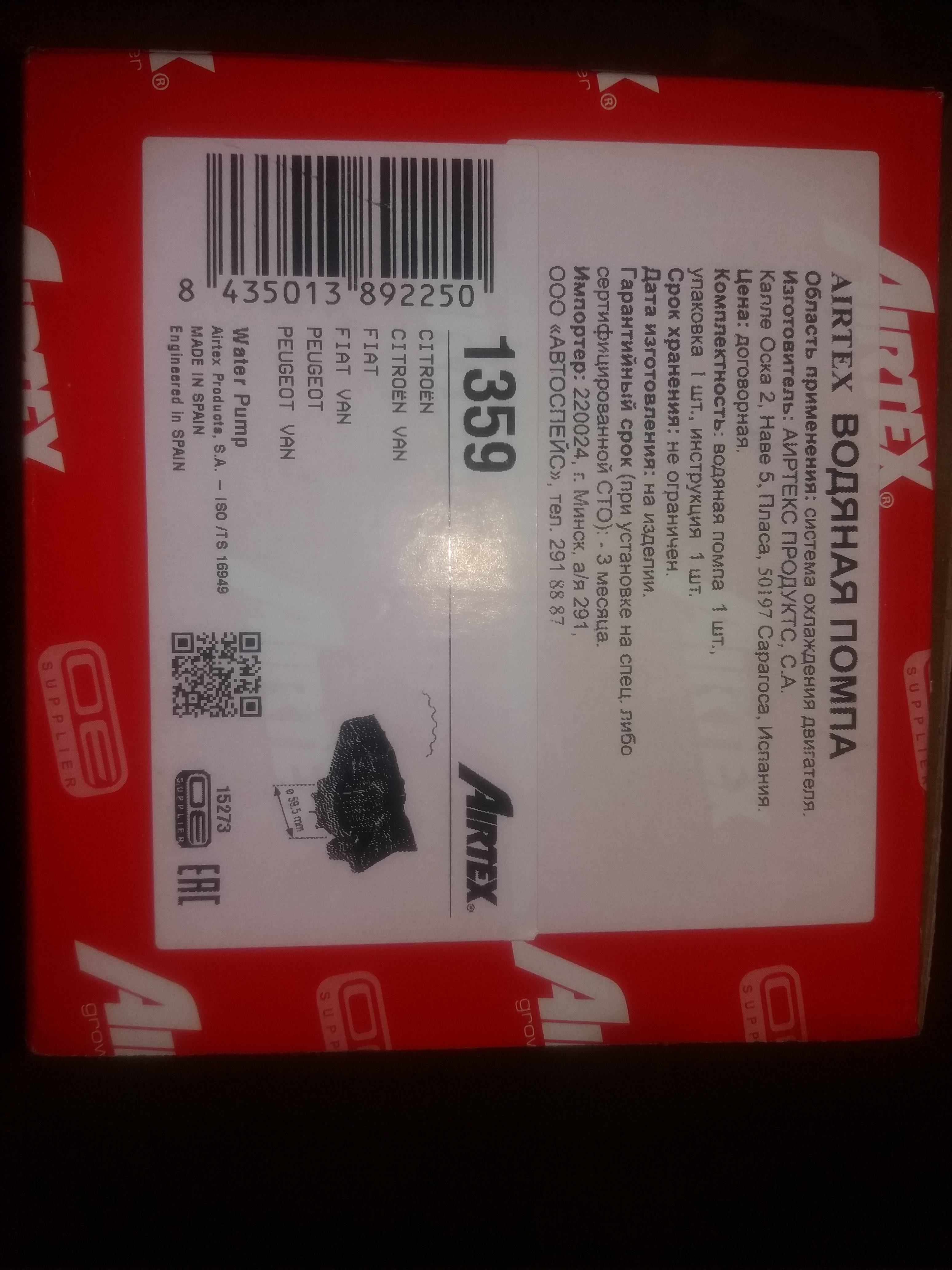 Водяной насос(помпа) фирмы AIRTEX(Испания)
