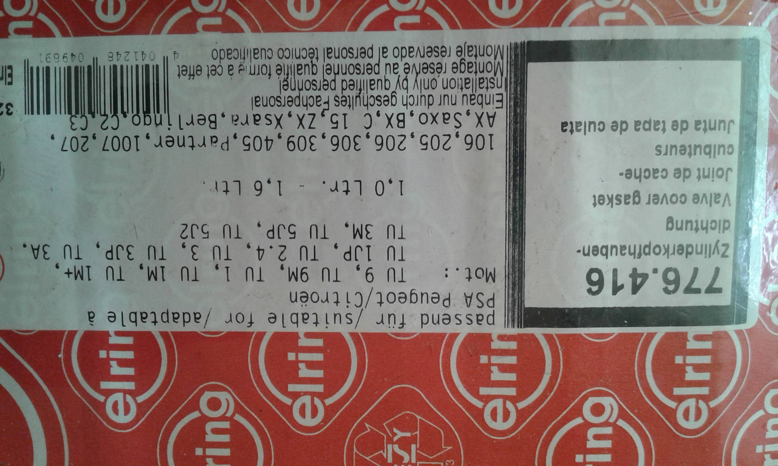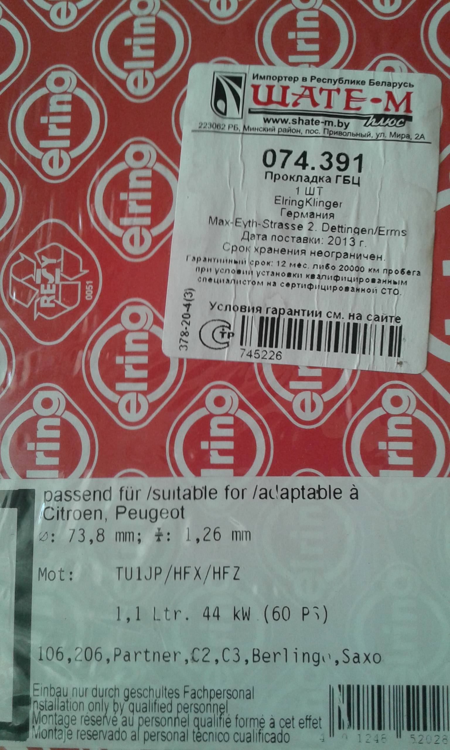 прокладки для двигателей пежо 1-1.6л.