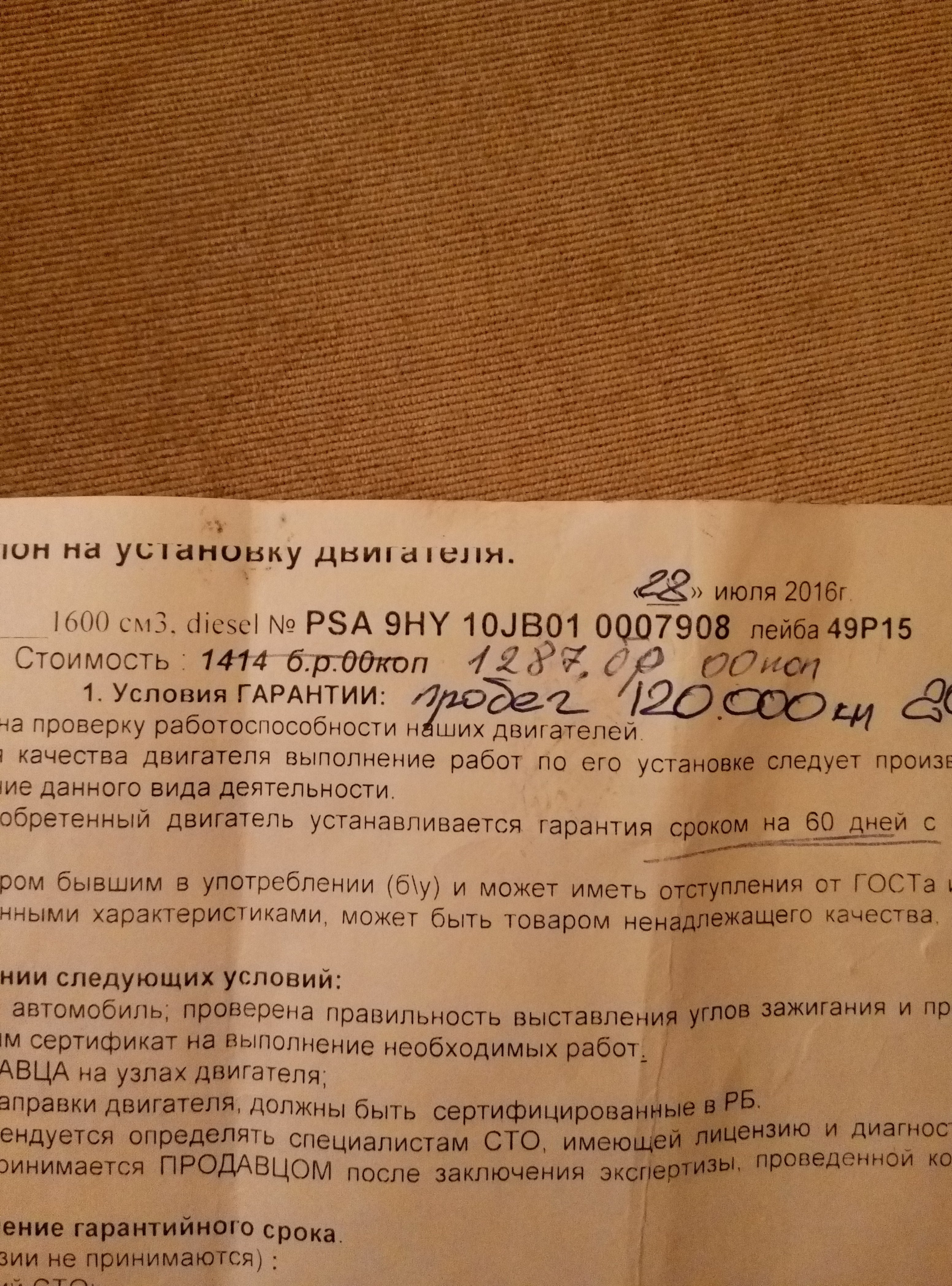 В результате масляного голодания, как мне сказали, пришлось поменять весь двигатель. Старый продам в сборе или по частям. Пежо 5008, 2010г.в., 1.6 hdi пробег был160000 км.