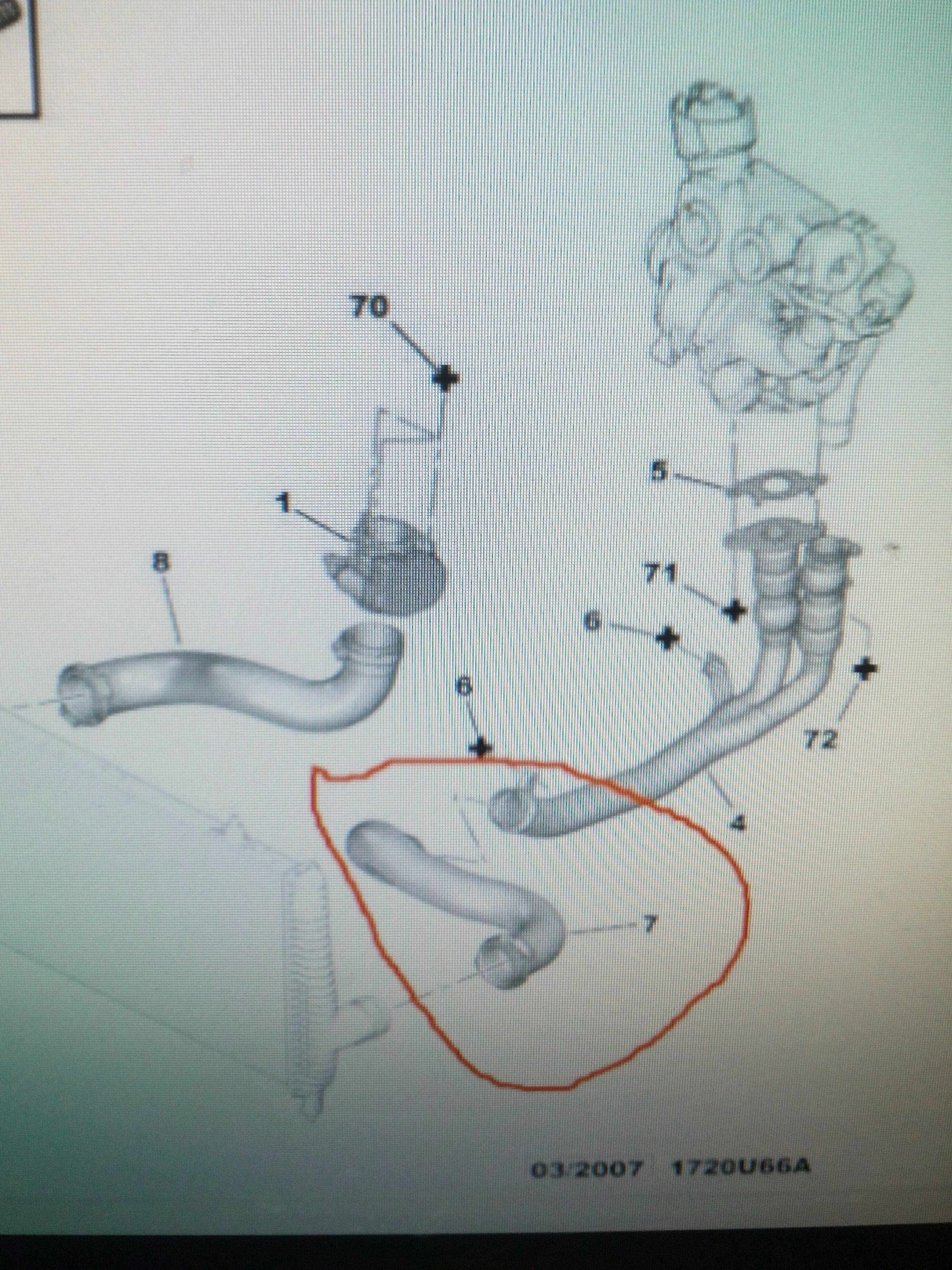 Куплю патрубок под номером-7 для Пежо 607, ресталинг, 2.2 HDI, би-турбо, 170 л.с., который идёт с турбины на интеркулер.