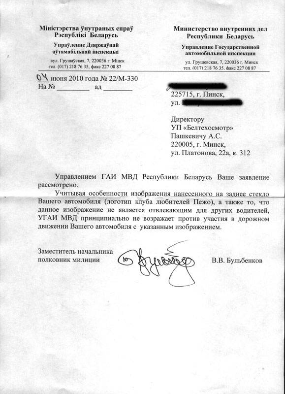 Друзья! Так как мое приглашение к обсуждению проблемы наклеек на техосмотре осталось почти без внимания, я решил заняться ей самостоятельно. В УГАИ МВД РБ было направлено письмо вот с такой фотографией: и сегодня мною получен вот такой ответ: Примечательно, что копия ответа направлено директору УП "Белтехосмотр", то есть он обязан довести его содержание до своих подчиненных. Думаю, больше никто не решится заставлять сдирать клубные наклейки на техосмотре!