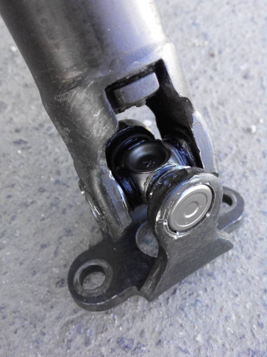 Может кому и будет полезно. Мой опыт замены крестовины рулевого вала. Имел место люфт руля порядка 15°. Меня это сильно не напрягало и управлялась машина без каких проблем, да и скоростным маневрированием не занимаюсь.) Я бы и не заметил, что люфт есть, т.к. не знал как должно быть, если бы об этом не сказал мне Ректор, прокатившись на моей машине.Пришло время и этой "неисправности". А тем более нашёл человечка с Витебска, который покупал себе одну крестовину с чашками 15мм, вторую с чашками 16мм и делал 2 по 15+16, чтобы одну из них поставить себе, а вторую продать мне.)) А тем более замена не сложная и всё делалось на стоянке суммарным временем снятия, с походом на работу для выпрессовки\впрессовки и установкой обратно 2 часа.Первым делом я заблокировал руль, путём поворота его без ключа зажигания. Некоторые привязывают, ставят метки, клеят скотчем и т.п. Но я так и не понял зачем это делать, если его можно просто зафиксировать блокировкой.Сразу забегу вперёд, путём проб и ошибок, я выяснил, что руль лучше всего было бы фиксировать с поворотом на 90° вправо, чтобы было удобнее выкручивать контргайки, удерживающие вал с рейкой. Я же фиксировал с прямовыставленным рулём, выкручивал одну контргайку, соединял вал с рулевой колонкой, выворачивал руль на 180°, блокировал его, отсоединял вал и откручивал вторую контргайку.Открываем отсек с предохранителями в салоне и выкручиваем 5 торксов. Снимаем подрулевую или надпедальную (тут кто оптимист, кто пессимист, кому как удобно ) панель. Откручиваем 2 контргайки на 10, удерживающих уплотнитель (пыльник, резиновый стакан) рулевой колонки. А потом гайку на 13 болта, удерживающего рулевую колонку с валом. Прежде чем рулевой вал отсоединить от рулевой колонки, нужно отодвинуть фиксатор, отмеченный стрелкой, в сторону от вала. Вот так он примерно выглядит: (фото с интернета с Peugeot 406) Затем тянем уплотнитель вверх и снимаем его с вала. Далее нужно открутить 2 контргайки на 10 удерживающих вал с рейкой. Здесь как раз и видно, что вал стоит таким образом, что вторая контргайка находится в неудобном месте в противоположной стороне. Либо как я потом соединять и выкручивать руль, чтобы вторая контргайка стала так же, как первая (удобнее всего выкручивать), или же, чтобы обе гайки были горизонтально видны слева и справа. После того, как открутили, вал можно снять с болтов, просто потянув его вверх. Так выглядит мой вал: Как видим крестовина вся в грязи с разорванными сальничками и с частичками ржавчины. Новая японская крестовина с чашками 15мм и 16 мм. GMB ST-1538+ST-1638 Большинство ставят 39-ки (некоторые и 40ки). Мне выбирать не приходилось, да и тот у кого я покупал ему на сервисе ставили пол года назад такую и сказал всё отлично. Главное, чтобы чашки были 2 по 15 и две по 16. К сожалению фотографий процесса выпрессовки старой крестовины и запрессовки новой я не делал, потому что делалось всё на своей работе у механиков. Мало того, что времени в обрез было, так ещё и не удобно было фоткать, прерывая и задерживая процесс. Но делали мы всё как на данном, хоть и длинном, но понятном видео: При необходимости уши легко, но аккуратно раздвигаются и сжимаются. В чашки какой-то немецкой смазки (аля солидола) наложили, т.к. с упаковки там хоть и есть смазка, но её мало. Вот вал уже с новой запрессованной крестовиной. Так же не забываем закерниться. Собираем всё в обр