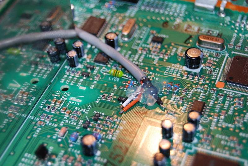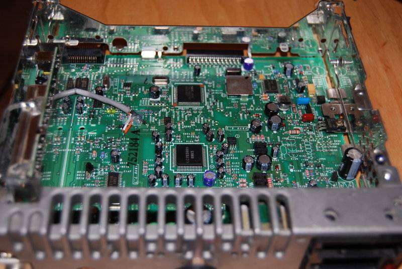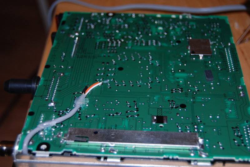 Предложу свой вариант добавления линейного входа к штатной магнитоле.Мне не понравилась идея с пустыми болванками в CD-приводе, поэтому я решил пойти по другому. Токопроводящие дорожки на плате, идущие от радиомодуля к микросхеме предварительного усилителя разрезал аккуратно:Припаял провода, идущие к усилителю, провел их аккуратно по плате и закрепил для надежности:Следующие два фото показывают место расположения проводов, идущих к радиомодулю:Провода вывел наружу через сделанное отверстие в радиаторе, так как вывод проводов наружу через имеющиеся отверстия приводит к тому, что он цепляется при извлечении и установке магнитолы в авто. А это приводит к повреждению провода.На рынке был куплен переключатель на два положения с двумя контактными группами для переключения между радио и внешним источником, гнездо 3,5мм и разъем на 8 контактов (оказался оптимальным по конструкции). Разъем необходим для извлечения магнитолы без извлечения остальной конструкции (дальше по фото поймете).Припаиваем провода к 8-ми контактному разъему:Припаиваем провода к 3,5 мм разъему:Припаиваем провода к переключателю:Всё обрабатываем термокембриком и получается такая вот конструкция для установки в авто:В итоге с магнитолой получилось вот что:Переключатель и разъем 3,5 мм устанавливаем за пепельницей:К 3,5 мм разъему сделал провод с двумя джеками на концах для подключения внешних источников... Можно также сденлать провода и под тюльпаны, и под 5-ти контактные советские разъемы, если захочется.В итоге включаю радио и при желании послушать плейер я просто подключаю его к 3,5 мм разъему, переключаю переключателем источник и слушаю.Нет необходимости использовать CD-диски с тишиной или дополнительные уловки.p.s. может кому пригодится20 баллов