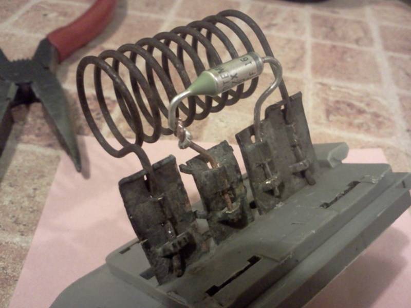 Собственно, столкнулся с проблемой отсутствия первой скорости вентилятора охлаждения радиатора. В большинстве случаев в этом виноват резистор стоящий в цепи управления вентилятора охлаждения. Их 2 типа, различаются по цвету корпуса(коричневый и серый) и сопротивлением самой спирали(0.54 Ома, и 0,23 Ома).Такие же ставились на 406 рестайл, 807, ситроен с5, с8. Разъем на 3 контакта, должны прозваниваться между собой первый и третий контакт. Спираль и резистор соединены последовательно. Конструкция простейшая, на данный момент стоит около 160 тыс. При детальном рассмотрении стало непонятно за какой Х(простите за мой албанский) платить столько денег, ведь кроме спирали и ТЕРМОПРЕДОХРАНИТЕЛЯ там больше ничего нет. В большинстве случаем просто тупо сгорает термопредохранитель. Маркировки на нем нет никакой. Немного погуглив нашел кой какую инфу о замене его. Оказывается можно его просто поменять на аналог. По данным сети интернет там стоит обычный термопредохранитель на 16А на 150 градусов. На радиорынке в Жданах полного аналога не нашел(это нормально, у нас не рынок, а куета) , пришлось взять с параметрами- 16А-165 градусов. Цена -10 тыс. беларуских рублей . Берем в руки эту хреновину и снимаем дуршлаг защитный экран металлический.(между корпусом и экраном вставляем любой тонкий металлический предмет и разжимаем). Внутри видим саму спираль(говорят что типа нихром) и рядом с ней термопредохранитель. Вот его и нужно заменить. Паять просто не рекомендую: во-первых- пайка сгниет быстро(место как-никак не защищенное), во-вторых -высокая температура спирали, если учесть что предохранитель на 150 градусов, значит до 140 разогревается смело. Поэтому рекомендую или просто старый предохранитель откусить возле самого его корпуса и оставить контакты старого к которым просто тупо прикрутить новый предохранитель. Или же попробовать аккуратно достать старый их клемм и туда вживить новый. Но столкнулся с одной фигней-на купленом предохранителе один контакт очень короткий и его тупо не хватает(сцукО), пришлось один оставить старый и просто прикрутить к нему короткий. Должно работать))). И еще важный момент- термопредохранитель стоит возле спирали на расстояние примерно около 4 мм. Это важно, поэтому новый поставил на такое же расстояние, хотя учитывая что температура в новом не 150. а 165 градусов было бы правильно поставить его чуть поближе, но я забил на это)) Потом аккуратно зажал контакты в пластине, прозвонил-все ОК. Закрываем защитным экраном и ставим на место. Первая скорость появилась опять) Дополнения, критика-приветствуется.15 баллов