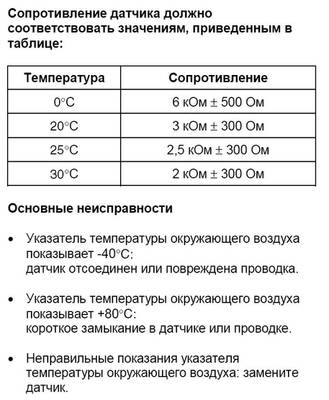 Сопсна знакомый это наверно я: ))) должна быть колодка в зеркале(ну в Рено так) найди нужны контакты на датчик откинь его и попробуй подкидывать резисторы разного номинала. Если данные будут меняться то проводка и блок климы здаровы. Тогда "куроч" зеркало и там смотри)Если есть какое либо упоминание в Тех нотах для пежо то можешь сразу же найти нужное сопротивление.Картинка это тех ноты для Renault Laguna II