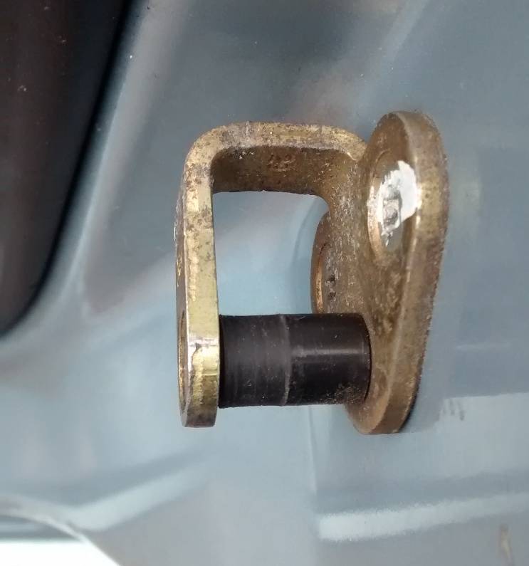 В догонку к своему вопросу - думал, что может выработка на скобе не дает замку легко открываться, попробовал на втулку скобы намотать изоленты - эффекта нет, дверь все также тяжело открывается если не прижимать, а если дать слоев 5 изоленты, то уже и закрывать надо с усилием. Есть у кого какие мысли? Положение скобы у нас не регулируется, только если подпиливать сторону прилегающую к кузову. Местами скобы тоже нет смысла менять - все 4 скобы одинаковые и замок цепляется за скобу на всех замках в одном и том же месте. Фото выработки на скобе с водительской стороны.