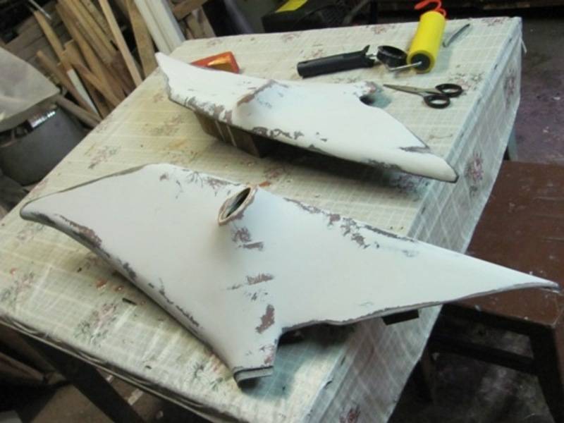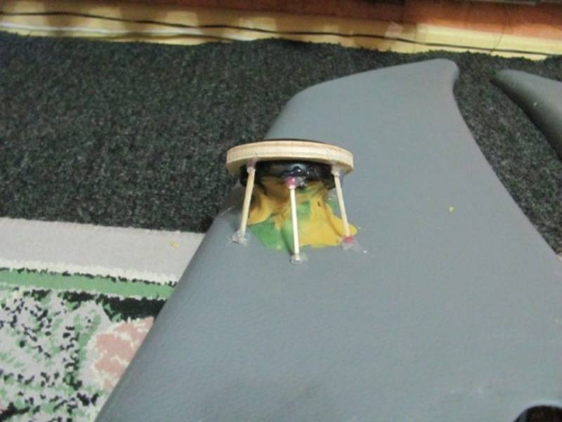 Сначала лепил пищалку пластилином, чтобы подобрать нужный угол, да и место впринципе. Затем выпилил кольца. И прелепил с кольцами.Укрепил чтоб натянуть чулокЧулокЗатем смолаСами пищалки смолой не мазал. Перед тем как достать пищалки укрепил одним слоем стеклоткани возле самой пищалки.Аккуратно достал пищалки и еще слой стеклоткани для прочности. Я когда доставал немного похерил, но у меня с переда остались корпуса, так что не страшно. "Немного" зашпаклевал"Чють-чють" зачистиль, затем дубль два для лучшего вида (хотя можно было второй раз и не париться)Клей, карпет и установкаПро заднюю полку если надо выложу позже, пока нет времени.