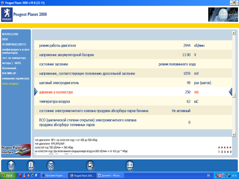 Подскажите пожалуйста по показаниям датчика давления в коллекторе пежо 406 2,0i (RFN):1) При работе на холостом ходу 328 мБар, бывает 359 бывает 343 мБар, вроде должно быть 360?2) Когда заглушил двигатель 515 Мбар и остается такое значение, а должно показывать атмосферное что-то около 1000 мБар. При просмотре показаний датчика после длительной стоянки атмосферное показывает вроде ноармально 976 мБар.3)При оборотах двигателя 3000 должно быть 270 мБар, а у меня 250, а бывает 234 мбар.Ошибок по СУД не бывает, увеличенный расход топлива, и бывают подергивания при движении в натяг (под горочку) при оборотах двигателя 1800-2000 об.