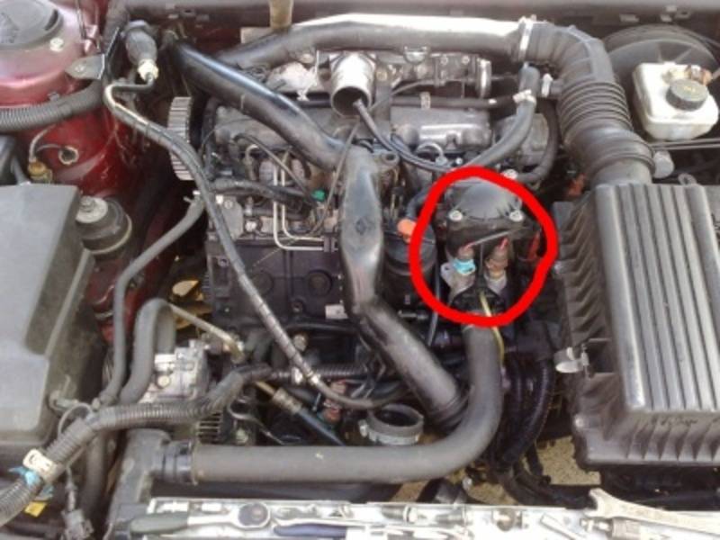 на фото обведено красным кружочком: коричневый справа - датчик температуры (отвечает за включение вентиляторов, провода идут на блок управления который находится под левым крылом со стороны водителя) синий слева - датчик температуры который на приборку (на сколько я понял). Есть еще один зеленый, он находится с противоположной стороны, он идет на комп.P.S. Фото не мое.