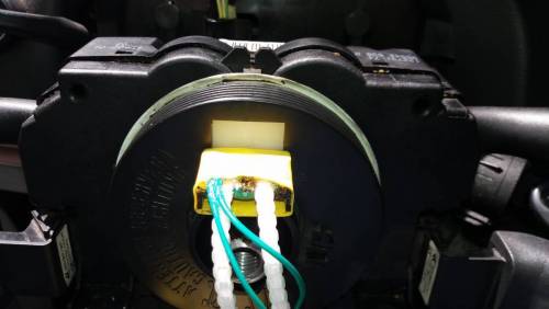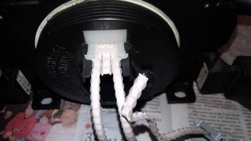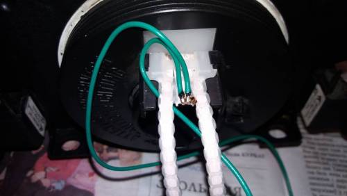 Случайно заметил, что сигнал не работает. Оказалось, что обломан шлейф в рулевом колесе. Шлейф заменил на более мягкие провода и залил полиуретановым клеем.
