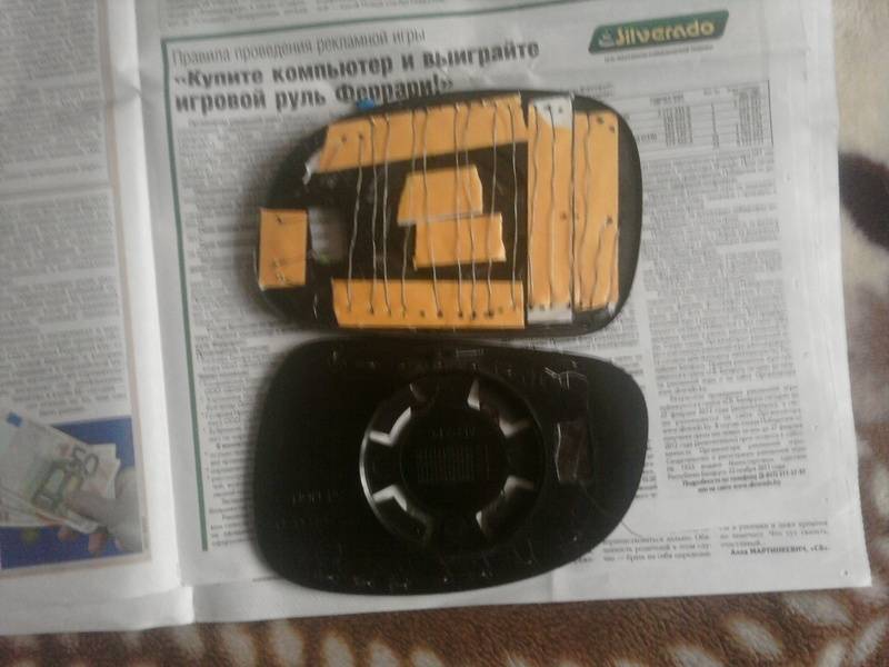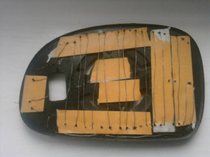 Воспользовался надежной проволкой нихромом. Приклеил на двухсторонний скотч и на клей, держится год без проблем греет отлично.