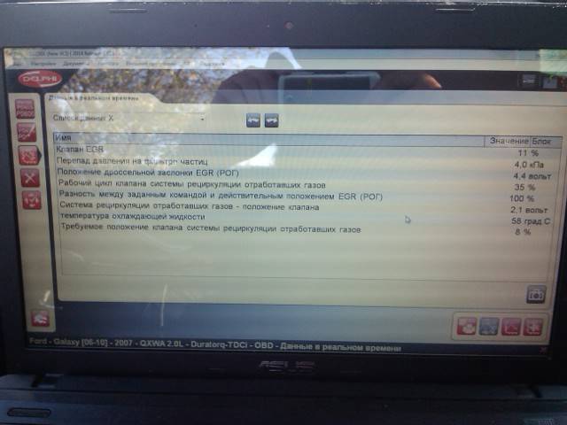 Имеется Ford Galaxy 2007 2.0 дизель. ФАП возможно удалить программно, а то достал он, тем более езда в основном по городу... Вот небольшое фото параметров на х.х. при оборотах 2000 перепад давления ФАП примерно 20-30 кПа, а разность между показаниями EGR вначале 25-30%, а потом падает до -30% и горит ошибка по забитости ФАП. Если не затруднит, можно услышать предварительный диагноз??? СПС, за ранее!!