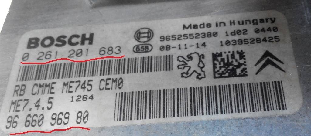 Добрый всем день. Может поможет кто. Прошу владельцев Tepee 1,6 бенз , (NFR) TU5JP4B/ 90 л.с выпущенных до 4.10.2010 (OPR 12383) взглянуть на свой блок управления двигателем ЭБУ (ECU). Интересует какие ЭБУ и с какой версией софта устанавливали на эти машинки. Нужны подчеркнутые красным данные.Буду благодарен за помощь.