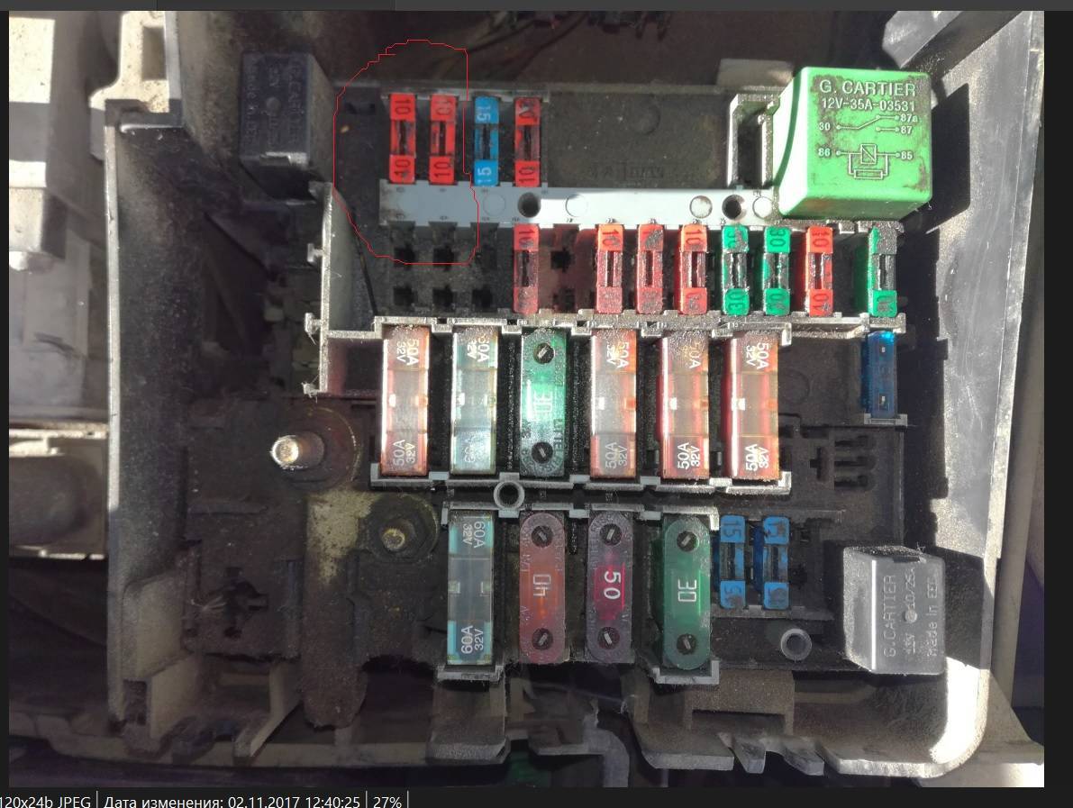 Добрый день. Провел все манипуляции. Толку ноль. Все так же , замыкая контакты под рулевого переключателя 2 моргания на приборке и 2а щелчка (наружной индикации нет, лампы не моргают в блок фарах) , с кнопкой аварийки также только 3 моргания на приборке и 3 щелчка (наружной индикации нет, лампы не моргают в блок фарах). Вот про что вылетело из головы, это отсутствие какого либо напряжения в блоке предохранителей 10А (выделил красным цветом) под капотом , контакты на месте , фото прилагаю. Подскажите за что отвечают данные предохранители . Заранее большое спасибо.