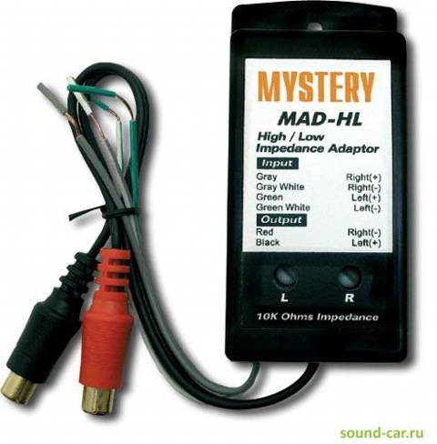 подскажи что за блочекАудио преобразователь акустических выходов в RCA. Покупал в Минске за 10 у.е. Mystery. Подключал сабвуфер к штатной магнитоле с большим цветным экраном в Пежо 407. На магнитоле даже есть куда подключить провод управления усилителем.
